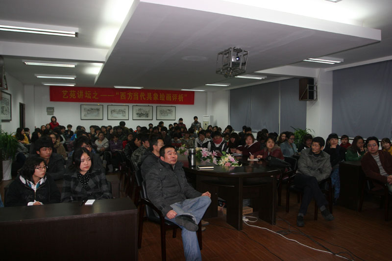 2011年2月28日晚上7点,永利yl23411官网入口南校区永利yl23411官网2B4001的会议室里座无虚席,艺苑讲坛第一讲迎来了杭州师范大学美术公司教授,前温师院教师,陆琦教授,评析丰富多彩的西方当代具象绘画。 从一幅幅经典的画例中,剖析出西方当代艺术的特点,发表自己的体会与感悟。各个国家的画家所绘的画作特色鲜明,都包含了很多自己民族的因素在里面,比如人文精神、大众文化等等。陆琦教授耐心地把各种风格的画作分门别类,罗列出小标题并做介绍,深入浅出,使同学们心领神会,“当代艺术”不仅指的是今天的艺术,而且在内涵上主要指具有现代精神和具备现代语言的艺术,给人以丰富的想象。具象却不具体,可以用不同的材料、形状、造型等等给人带来不同的艺术感受,内涵深刻,意义深远。 精彩的讲座,生动地讲解,让美院学子在短短的两个小时,领略到了当代艺术的魅力,开阔了学术眼界。 讲座前,美院副经理蔡可群及部分教师与陆琦教授友好地进行了交流。