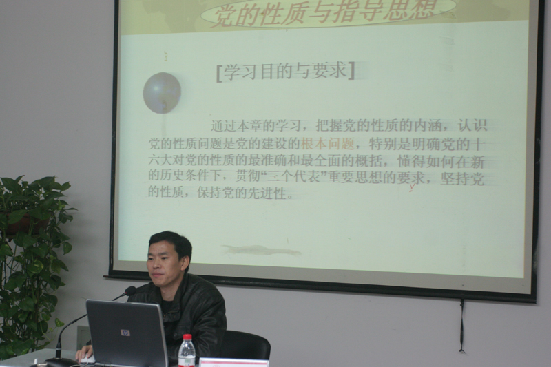 本次党课的主题为“中国共产党的性质和指导思想”。何毅老师讲课伊始,便强调了此次党课学习的主要内容。即什么是政党?政党是如何产生的?中国共产党的性质是什么等。然后分点分段的逐一解析,何老师的讲座凝练而又丰富,并时常引经据典将理论知识与实际有机结合,使同学们耳目一新,领会了党务知识的同时,提升了自身的理论素养。