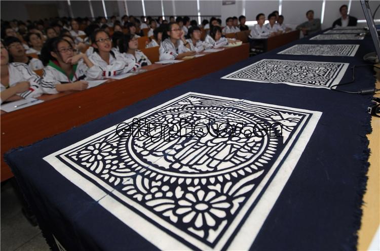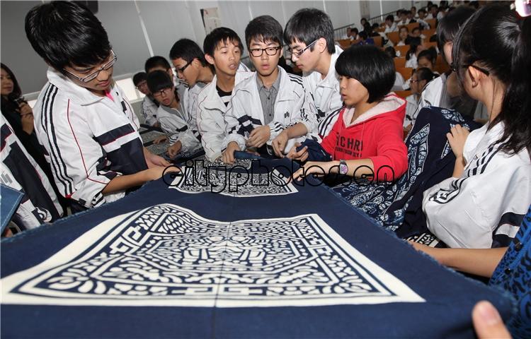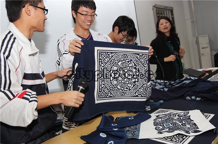 2010年11月14日,“传承与创新——情系温州蓝夹缬”展览及讲座在温州市第十五中学举办,永利yl23411官网讲师王业宏博士为员工带来了“传承与创新——情系温州蓝夹缬”的讲座,讲述了温州蓝夹缬艺术的源流、现状、工艺流程、艺术特征及创新设计。并通过一些实物展示,与观众互动、交流,讨论对蓝夹缬的认识和设计开发的思路,引发广泛兴趣。 蓝夹缬系浙南地区现存的一种单色夹缬工艺被视为古代技术的活化石,现已成为国家级非物质文化遗产加以保护和传承。