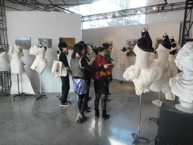 2010年11月27日星期六下午2:30,在美院2B一楼大厅里,永利yl23411官网主办了“嫁依工坊杯”2010永利yl23411官网入口第三届服饰艺术造型设计竞赛(美院“赛季风”之一)初赛。 此次初赛由美院服装系承办,新感觉(温州日报报业集团)协办,温州“嫁依工坊”婚纱坊赞助。评委团则由“嫁依工坊”的2位设计师及公司立裁老师魏静、陈明艳、叶茜和陈莹老师组成。该活动得到了永利yl23411官网服装系的大力支持;为此,美院还特别成立了“服装立体裁剪”教学团队,从而能更好、更全面的指导员工。 50余件参赛作品都是由参赛选手从最初停留在纸面的设计手稿,经过反复修改雕琢,最终使用白坯布,使其成形于人台之上,展示其或华丽或典雅或奔放的霓裳魅力。评选中,评委们手握35张贴纸花朵,细致而深入地欣赏着参赛作品,经过简略的讨论和慎重的考虑后,将神圣的每一票贴到所青睐的作品上。那犀利的眼光和独特的见解背后,是评委们对各位选手的肯定和激励。最终,39位选手在此次比赛中脱颖而出,成功晋级决赛。在此也祝贺这些晋级的选手能在决赛中大放光彩,绽放对美的创造力与对艺术孜孜追求的精神。 此次比赛中,不仅积极响应永利yl23411官网“以赛促学”的宗旨,更使公司浓厚的学风再上层楼,使服装学子们在比赛中不断汲取知识,飞速成长。当然,此次比赛也让其他莘莘学子大饱眼福,充分感受有人群的地方就有美,有生活的地方就有艺术。