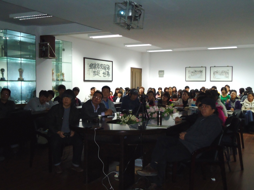 2010年11月9日上午9点,在永利yl23411官网2B4001举办了由福州画院经理,温籍著名画家谢振瓯教授主讲的《东西方绘画的图示观、造型观比较》讲座。永利yl23411官网经理曾维华教授、办公室主任尹乃军,公司部分专业老师,温州文化机构代表以及美术专业员工参加了本次讲座。 讲座上,谢振瓯教授在幻灯片上向同学们展示自己的心血之作,其中有《丝绸之路》、《长安西市图》(局部)、《大唐伎乐图》、《唐玄奘荣归长安图》等等优秀大作。这些画都是谢教授平时采风所作,丰富的阅历及深厚的文化底蕴使每幅画作都充满着内涵及魅力。在展示的同时,谢教授悉心向在场人员讲解各幅画的背景及内容含义,讲述古代的人文习俗,获得在场师生频频点头赞同。谢教授讲话中提到西方绘画注重点线面,而我国更注重线的流动性、无限性与曲折性,强调感觉。谢教授说道,不要画一张画的时候才构图,要平时常画小构图,去理解、去掌握构图方法,不要忽视对生活的敏感,要观察生活,重视感觉。多用笔画,而不是拿着照相机到处拍。谢教授认为画画就是画什么与怎么画,这两者是相辅相承的。画面的虚实对比布置,颜色倾向的运用,他都一一作了讲解。谢教授重视形象,形是一种外在的形式,像是内在属性规律,多用形象去记录生活。他认为这些图案代表一个民族,一种文化,时尚及寄托。讲座之余,谢振瓯教授耐心解答现场员工的疑问,让在场老师们及员工们获益匪浅。 最后,曾维华经理致词希望同学们多去思考、体味谢教授的讲话,并运用于实践中去。 接近两个多小时的讲座,谢振瓯教授的精彩讲说,使在场师生受益良多,对东西方绘画有了深刻的认识及体会,尤其是国画的精髓,对以后的画作提供了帮助。