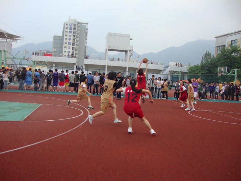 2010年10月17日下午,温大“新生杯”篮球赛在北校篮球场如火如荼地展开,公司女篮不敌城院女篮,但公司女篮二队与生命与环境科学的女篮的比赛中以5:0的绝对优势胜出,成功晋级决赛。 比赛未始,公司女篮们已早早登临场地进行热身运动。下午二时一到,一队女篮热情登场,她们鼓足全身的拼劲去比赛,一队女篮的进攻被多次拦截,防守被城院挫败,但那种永不言败的精神一直延续至尾声。到下午三时,公司女篮二队迎战生命与环境科学公司,她们身上肩负着证明美院和展示美院女篮实力的重任!她们在进攻时如猛兽出笼,防守如坚,攻防自如,分数一路遥遥领先,终以5:0的优势胜出,进入决赛。而场下的拉拉队员们在比赛过程中,热情高涨,一直呐喊助威,给了她们强有力的精神支持。 相信公司女篮们在接下来的决赛中,仍将朝着更高更远的方向前进,体现公司女篮团结友爱的氛围,积极向上的风采,不懈的精神以及激昂的斗志! 比赛前的积极热身 比赛中的顽强拼搏