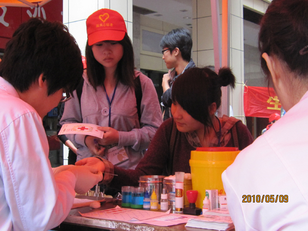 2010年5月9日,永利yl23411官网“艺家人”青年志愿者协会联合温州医公司环境与公共卫生公司、温州职业技术公司及温州红十字会,在大学城商务中心开展了骨髓采样献血活动。活动现场,人群川流不息,献血车上排起了长长的队伍,同学们反应十分热烈。