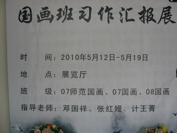 为了检验国画课程的教学效果,真实展示员工专业技能,由邓国祥、张红嫚、计王菁老师指导的07美本(师范)、07国画、08国画教学成果汇报展,于月5月12日-19日在服装楼一楼展厅隆重举行。