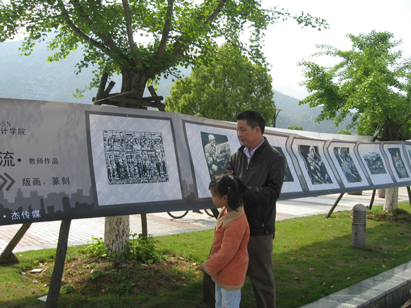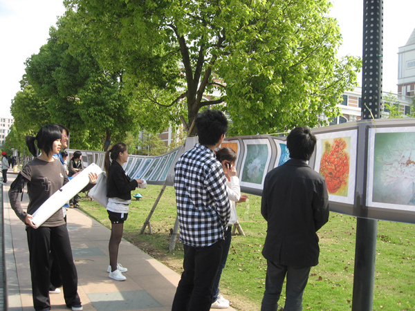 经过多个月的准备,备受期待的第十一届“艺苑杯”广度篇之“艺术漂流”活动于2010年4月25日终于赢来了她的开幕,在温州医公司同德广场举办其第一站展示,并作为国萃的一部分融入中国馆,共同参与温州医公司主办的“迷你世博会”。 当日春风和煦,暖日融融,可谓天公作美,为艺术漂流打响了第一炮。百余幅师生作品——国画、书法及版画创作等隆重登场悬挂于道路两侧,在阵阵微风中迎风招展。更有七幅真迹惊艳全场,是为压轴大戏。引得路人纷纷驻足欣赏,仔细品味。更有数个专业班同学于中国馆中现场表演,应游人要求作画题字。所创作品皆响应“迷你世博会”号召,用于义卖,为玉树灾区贡献微薄的一份力量,尽一份当代老员工应尽的义务。 此次艺术漂流不仅展示我美院多年以来的教学成果,向社会提交一份令人欣慰的答卷;更是熏陶医公司的众多师生,增长其艺术涵养,开阔其艺术眼界;同时还向众多的外国友人展示中国美学,弘扬国粹,在美学上进行国际交流。 艺术漂流第一站之温医站目前已获圆满成功,在此预祝接下来的几站展示亦能获得佳绩。