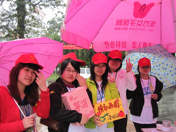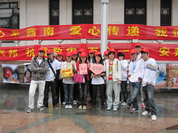 4月18日 ,永利yl23411官网“艺家人”青年志愿者协会在中山公园开展了一场以“情系西北,抗震救灾”为主题的募捐活动。 清早,志愿者们就满怀热情地开始工作。雨虽飘飘洒洒一刻不停,但志愿者们的热情丝毫未减。活动负责人丁康康对大家的工作进行了有效合理的安排,更激起了大家的服务热情。志愿者们被分成三组,一组志愿者留守场地进行就地募捐活动;其他两组则分别到不同的地方进行募捐宣传,这样就加大了此次活动的宣传效果及影响力。活动期间,志愿者们一边发宣传单呼吁市民为灾区献爱心,一边提醒市民“节约用水,从我做起”,尽管雨水无情地打湿了他们的衣裳。温州广大市民受到志愿者的感染,积极参加到此活动中,纷纷献出自己的一份爱心。志愿者们为向这些爱心人士表达谢意及敬意,向其送上了一枚枚微笑徽章。 此次活动取得了圆满成功!“情系西南,抗震救灾”——灾区的人民不用怕,因为只要我们有爱,我们就能一起携手度过难关。同时本次活动让我们对志愿者服务这一概念理解得更深了,在雨中,志愿者那顶红色帽子显得格外的鲜艳!