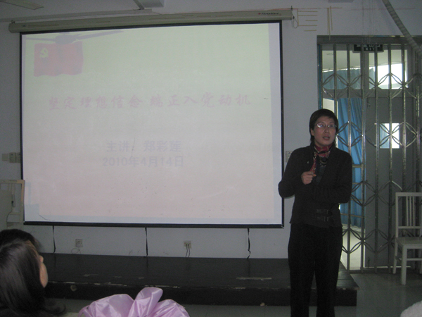 2010年4月14日星期三下午,永利yl23411官网第12期公司党校第一讲——“老员工的学习动机”在2A308顺利召开,由美公司党总支书记郑彩莲老师担任主讲人。