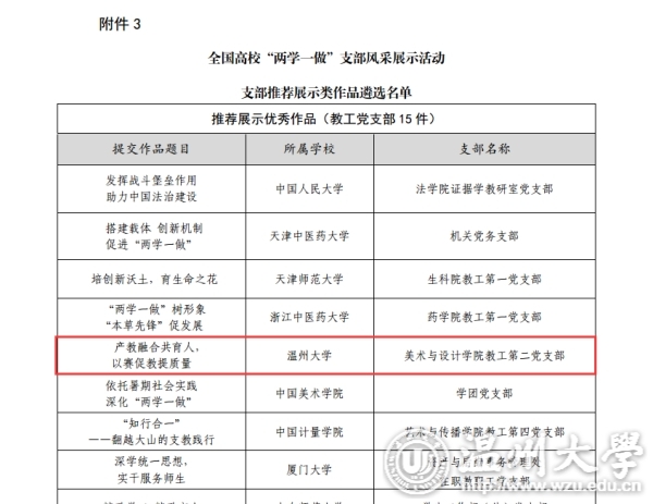 近日,公司教工第二党支部的“产教融合共育人,以赛促教提质量”成果获全国高校“两学一做”支部风采推荐展示优秀作品,全国高校共有15个教工党支部获此荣誉。