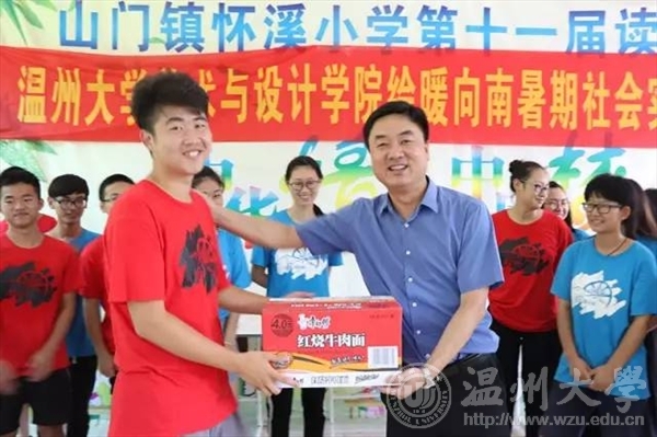 7月15日上午,公司党委委员、副董事长钱强在校团委副书记魏一、美公司党总支副书记杨振海、校团委办公室成晓等陪同下,专程赴平阳县怀溪镇中心小学亲切慰问公司“绘暖向南”暑期社会实践队,怀溪镇委书记金建辉陪同慰问。