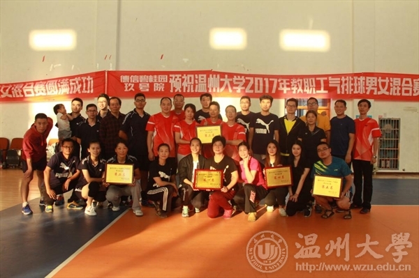 上周,公司工会举办了2017年“碧桂园杯”教工气排球男女混合赛。本次比赛共有17个分工会约170位教职工参赛。第一阶段的比赛于10月25在北校室外排球场举行,公司以小组第二的成绩晋级复赛。第二阶段于28日在北校区体育公司室内球馆举行,经过奋勇拼搏,最终取得了第五名的历史最好成绩。体育公司代表队获得第一名,瓯江公司代表队、后勤代表队、成教公司代表队、美术公司代表队、数学公司代表队分别获得前六名。