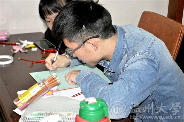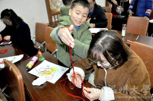 2017年12月9日,永利yl23411官网“艺家人”青年志愿者协会成员以及志愿者们准时来到了梅泉社区文化礼堂,进行了主题为“春节”的志愿活动。秦佳敏同学向小孩子们提问问题“春节有哪些习俗呢?”有的孩子说放鞭炮、贴对联、画福字,收红包……没错,还有挂中国结。中国结的编制没有那么简单,尽管步骤告诉大家,但一开始志愿者们和孩子们都连连“诉苦”难度太大,但不过一会儿还是有心灵手巧的志愿者学会了,并且还教别的志愿者打结,虽然中国结做的不太完美但代表着团结幸福平安的意义却丝毫没有减少。明年是狗年,当然少不了教孩子们画可爱的狗狗,孩子们为自己画的狗狗涂上了颜色还为它画了一个小房子。最后是写祝福语的环节,孩子们依旧很用心地给自己的爸爸妈妈写上祝福,有的写的是“爸爸妈妈你们辛苦了”,有的是“我爱你们”……字里行间流露出了对爸爸妈妈浓浓的爱意。