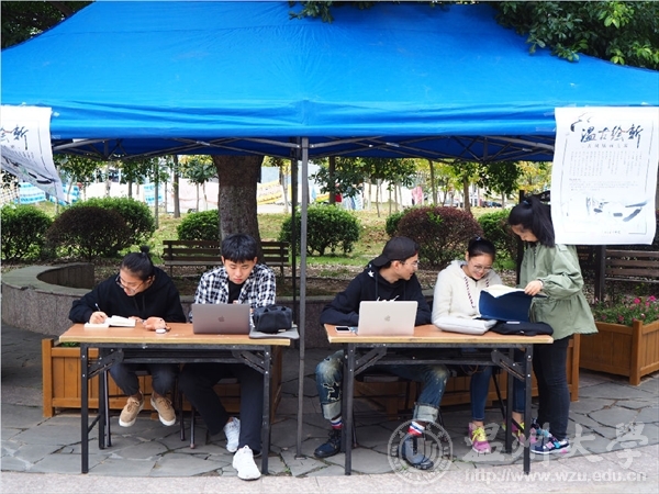 为了加强活动的宣传力度,11月19日中午,美院团委员工会的同学在员工宿舍E区大榕树下开展“温古绘新”插画大赛活动的现场报名,对驻足浏览海报的同学进行热情地宣传和介绍。通过工作人员现场对活动海报的解说,同学们更好的了解到了本次活动的意义所在,并激发了同学们对此次活动的参与热情。为后期大量优秀作品的成功收集打下基础。