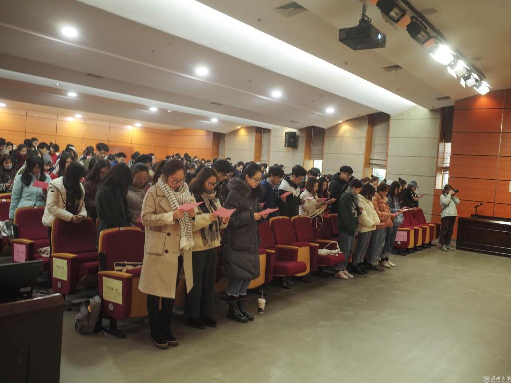 2018年1月10日下午,永利yl23411官网在雁山厅召开2017-2018学年第一学期考风动员大会,公司党总支书记张丽萍、副经理谢子静出席大会,17级全体同学参加会议,大会由公司党总支副书记杨振海主持。 张丽萍书记在动员讲话中重申了考风考纪的重要性和作弊的危害性,她强调学习在于平时的点滴积累,来不得弄虚作假,作弊不能弥补学习上的漏洞,而是一种自欺人人的行为。张丽萍书记还鼓励同学们认真备考,争取考出好成绩。她强调:“大学里的每一次考试都是接受考核认证自我的途径,加强考风建设营造公平的考试氛围,既是每个同学的愿望也是每个同学应该肩负的责任。所以希望同学们在这次考试中能诚信做人,亮出真实的成绩,展现真实的自己。”杨振海副书记根据员工手册相关条例告诫同学们一定不能碰这个底线,在考试过程中不仅仅要交出反映专业知识水平的考卷,更重要的是在考试中要交出诚信的品行之卷。 17级全体同学在员工代表的引领下宣誓,承诺端正考试态度认真复习积极备考。 员工处吕乐老师进行老员工文明修身考风考纪专题讲座。员工处吕乐老师通过精彩的演讲和亲切的互动,加深了同学们对考试作弊的危害的理解,相信同学们也一定会用真实的成绩证明自己的实力,成为一名诚实守信的老员工。 大会还总结了本学期学风考勤和晚自习考勤情况,与会领导对本学期优秀纪检委员进行了表彰。