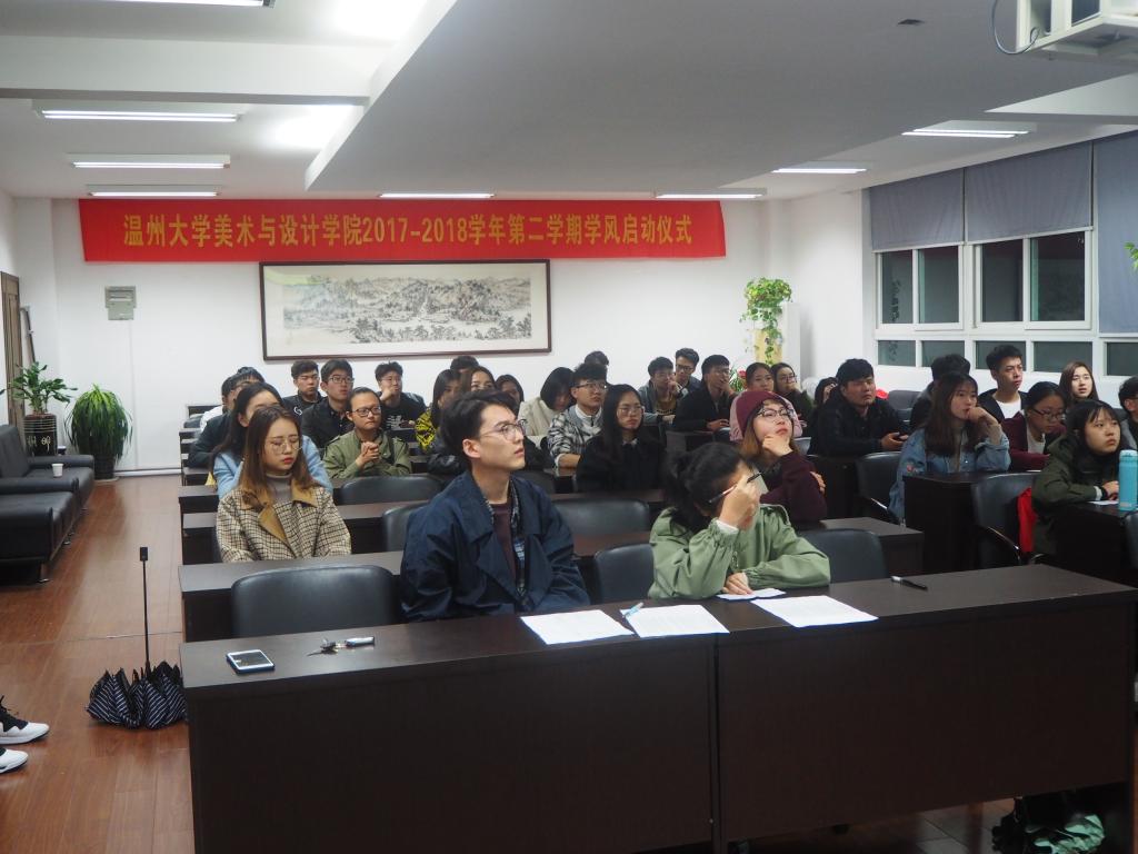 3月16日晚上,永利yl23411官网2017-2018学年第二学期学风动员大会在2B4001召开。参加本次会议的有员工科李雪涛老师,15-17级各班班长和纪检委员。 会议之初由学风纪检部部长金洁公布了上学期的查课情况,同时强调了本学期查课的注意事项。随后李雪涛老师就查课情况再次做出强调:上学期美院各班级的出勤率都很高,但仍有极个别的班级出现迟到旷课的情况,本学期会严抓迟到、旷课和上课玩手机等问题。紧接着,李雪涛老师就特色晚自习提出了要求,晚自习从第三周开始,17级要达到规定的次数,并鼓励16、15届员工积极参加晚自习。最后,李雪涛老师重点传达了2017-2018学年五班十星评选的内容,希望更多的班级和个人参加五班十星的评选。 文/吴月 图/朱君卫