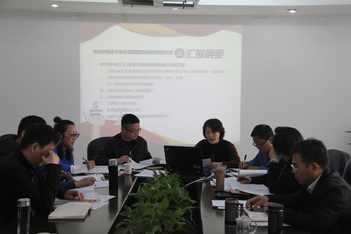 张丽萍传达了中央十九届三中全会会议内容,她从改革开放以来党的历次三中全会我们党围绕国家经济发展和经济体制改革所提出改革方案,并就《中共中央关于深化党和国家机构改革的决定》做了重点学习辅导。她强调深化党和国家机构改革的主要目的是要下决心解决党和国家机构职能体系中存在的障碍和弊端,通过改革机构的设置,职能配置的优化,通过深化转职能、转方式、转作风,提高效率效能,为决胜全面建成小康社会提供最有力的保障。
