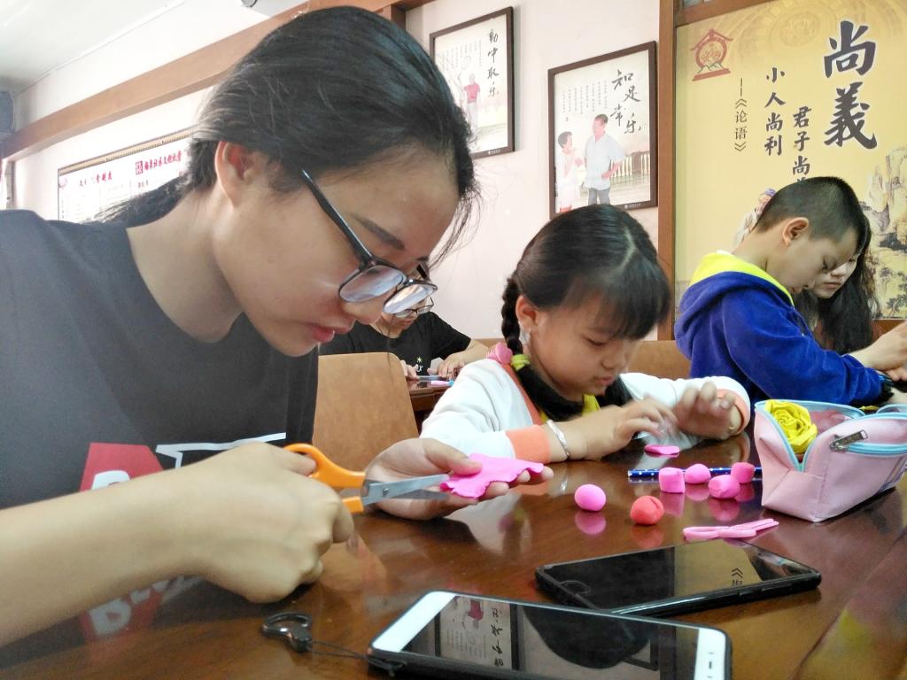 此次活动内容主要是用橡皮泥制作康乃馨,将亲手制作好的花送给自己的母亲,给辛苦操劳的母亲一个惊喜。把一块块橡皮泥,捏成花的样子,有红的有蓝的……娇艳欲滴。活动过程中小朋友和志愿者们捏的不亦乐乎,相互比拼着彼此的花朵,炫耀着自己的成果,再加上后来橡皮泥的上色,显得“花朵”更加鲜艳,像是有了香味一样。经过一系列的修改,手上的花朵越来越精致,同时选出了前十名分发了奖品,没有得到名次的的小朋友也奖励了纪念品。