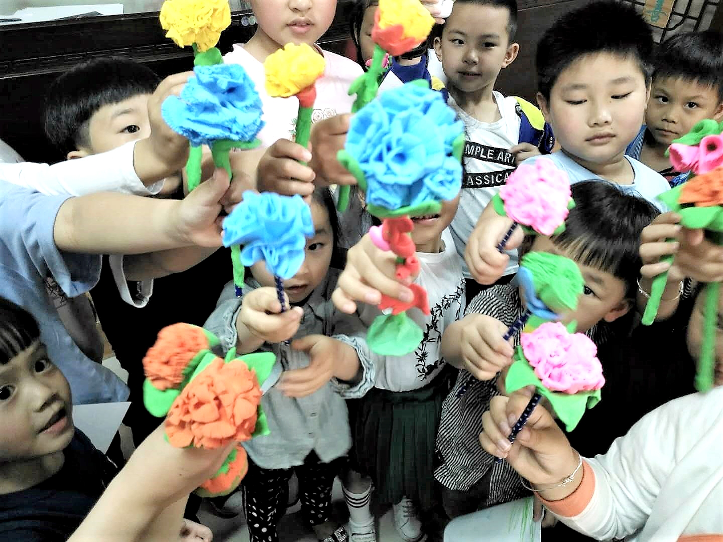 5月12日,温大永利yl23411官网“艺家人”青年志愿者协会的志愿者们按时来到了梅泉社区文化礼堂,进行了主题为“母亲节”的志愿活动。 此次活动内容主要是用橡皮泥制作康乃馨,将亲手制作好的花送给自己的母亲,给辛苦操劳的母亲一个惊喜。把一块块橡皮泥,捏成花的样子,有红的有蓝的……娇艳欲滴。活动过程中小朋友和志愿者们捏的不亦乐乎,相互比拼着彼此的花朵,炫耀着自己的成果,再加上后来橡皮泥的上色,显得“花朵”更加鲜艳,像是有了香味一样。经过一系列的修改,手上的花朵越来越精致,同时选出了前十名分发了奖品,没有得到名次的的小朋友也奖励了纪念品。 康乃馨的名字蕴含着健康,它是母亲之花,又含有祝福母亲健康长寿的寓意在内。本次梅泉让小朋友们用稚嫩的双手亲自为母亲制作康乃馨,不太完美的花却是小朋友们对母亲最真诚的祝愿。祝福天下所有的母亲幸福安康,这是作为子女们最大的心愿。