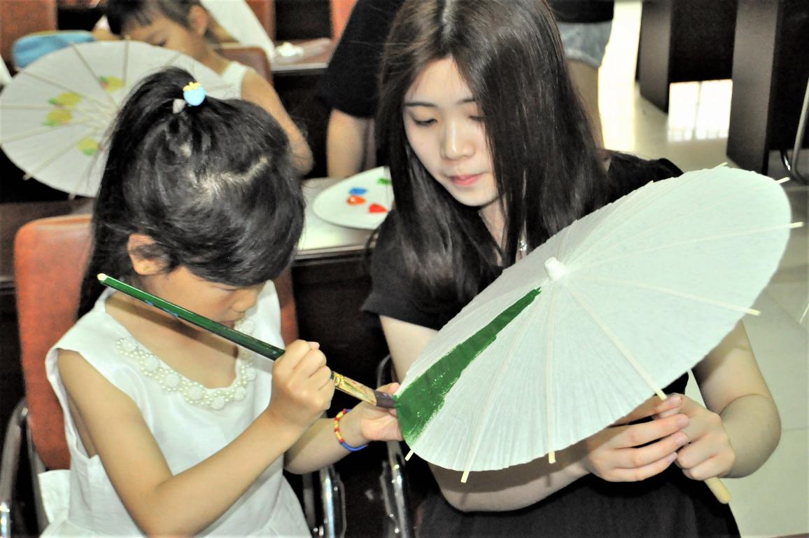 5月19日,温大永利yl23411官网“艺家人”青年志愿者协会的志愿者们如期来到了梅泉社区文化礼堂,进行了主题为“伞上书画”的志愿活动。