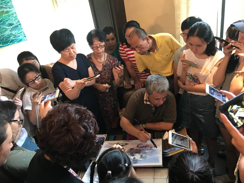 7月1日下午,在温州市图书馆朴念文化客厅“籀园讲坛”再次迎来永利yl23411官网由永利yl23411官网主办的“传统文化与时尚生活”系列主题之八“走近水彩,了解水彩,快乐水彩”讲座,讲座由永利yl23411官网李利民老师主讲。现场加座后仍座无虚席,李老师幽默风趣的演讲风格,观众的热情洋溢,使得现场氛围持续保持着热烈与活跃。 水彩,顾名思义,就是以水为媒介调和颜料作画的表现方式。那么,一幅有灵魂的水彩是怎样生成的呢?李利民老师不仅分享了自己的写生、创作经验及心得,例如作画技巧、风格调子的形成、画面处理等技巧,给大家带来很多干货;而且通过对水彩的生动讲解及阐述,以及现场动手边作画边讲解的方式,让我们对水彩有了更深的认识与理解。活动期间,读者朋友热情参与,现场互动与提问不断。由李老师亲笔签名的10份《李利民水彩画精选》作为随机抽奖奖品也为互动增添了热烈氛围。