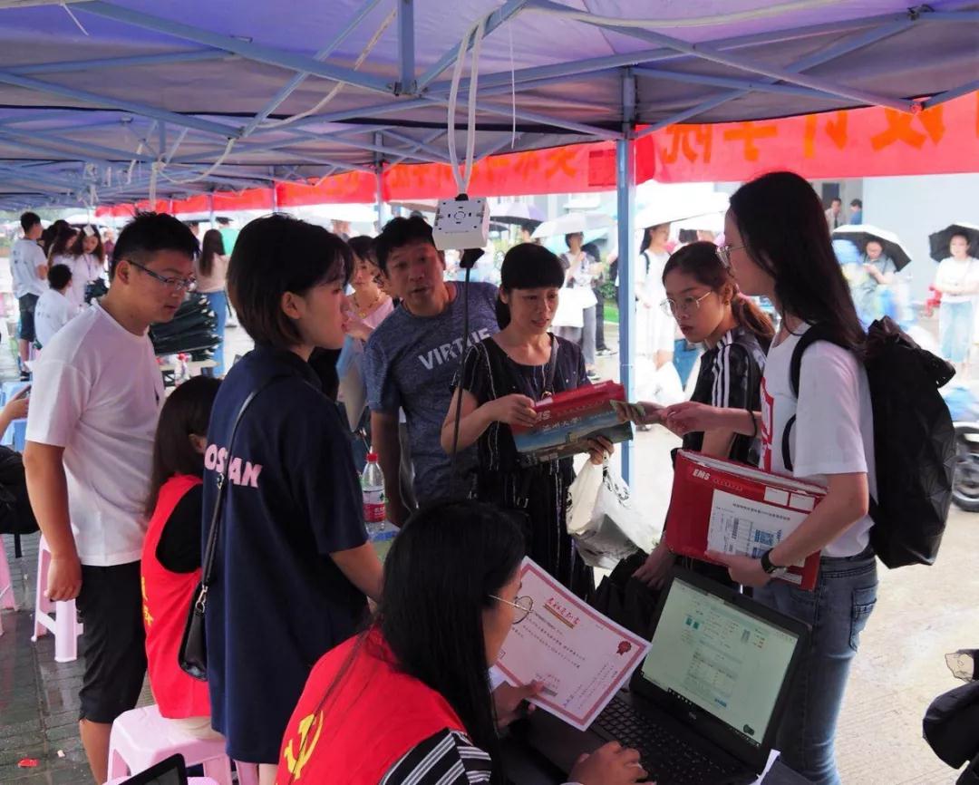 下午四点左右,大雨倾盆。公司领导班子与新生班主任、老师高度关注2018级新生入学工作,亲临迎新现场,亲切地慰问来自五湖四海的同学。