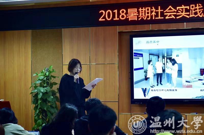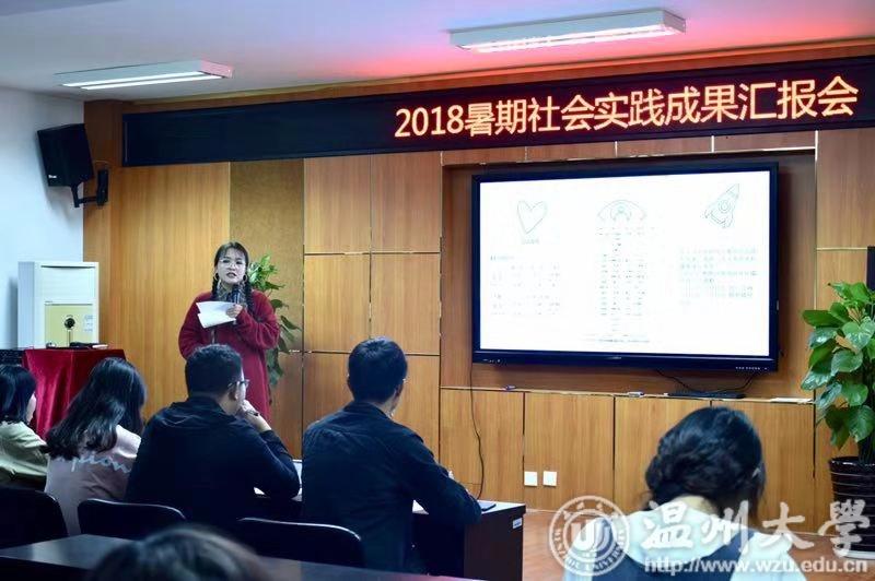 会议第一项议程是成果展示,首先上台展示的队伍是“同爱同行实践队,队员们来到了利宝特殊公司进行支教活动,为这群可爱的特殊儿童带去温暖,和他们一起上课,做手工,一起画墙绘墙绘等等,接下来上台展示的是魅力工艺实践队,他们参观了南戏博物馆,温州工艺美术大师楼等艺术馆,体验了瓯绣,鸥窑,剪纸等古典手工艺,并进行了爱心义卖活动和亲子活动。第三支是艺绘实践队,他们来到了乐清市中心幼儿园进行了长达80米长墙的各类3D以及平面墙绘,并和孩子们一起绘制了T恤。然后是艺韵晚霞实践队,详细展示整个实践活动的工作过程。接下来是绘暖向南实践队,他们一行人来到了一所山里的希望小学,让他们去了解外面的世界,为他们画墙绘,一起做手工。接着是“鞋蕴传承实践队,他们以鞋靴为载体结合专业技能知识开展社会实践和文化建设,并得到了鞋企的大力支持。晞浔实践队,他们前往各个古镇进行考察,到当地进行走访调查,了解当地风俗文化,并从中体会来自古人的伟大智慧,提升审美。然后是“蚂蚁行动实践队,他们来到了山中为孩子们带来了鞋子,给他们做体检,义诊等等,收获了感动体会了真情。最后大手牵小手实践队,他们到京山村社区支教,到南白象公寓看望老人。