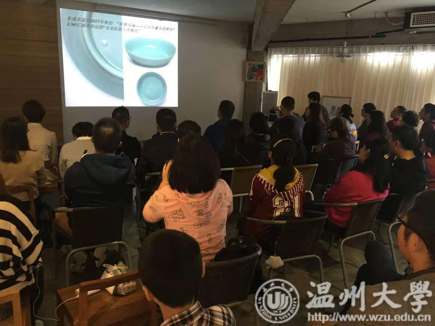 中国之美,美在文化艺术,而青瓷更是其中的代表之一。11月3日下午,由永利yl23411官网和温州市图书馆联合主办的“传统文化与时尚生活”系列活动之十一“青瓷之美知多少——龙泉青瓷审美与赏玩活动”在东瓯智库心工场四楼举办,主讲嘉宾为中国美术家协会会员、中国陶艺家协会会员、中国壁画家协会会员,永利yl23411官网关明新副教授,七十余人参与了本次活动,现场氛围轻松愉快。