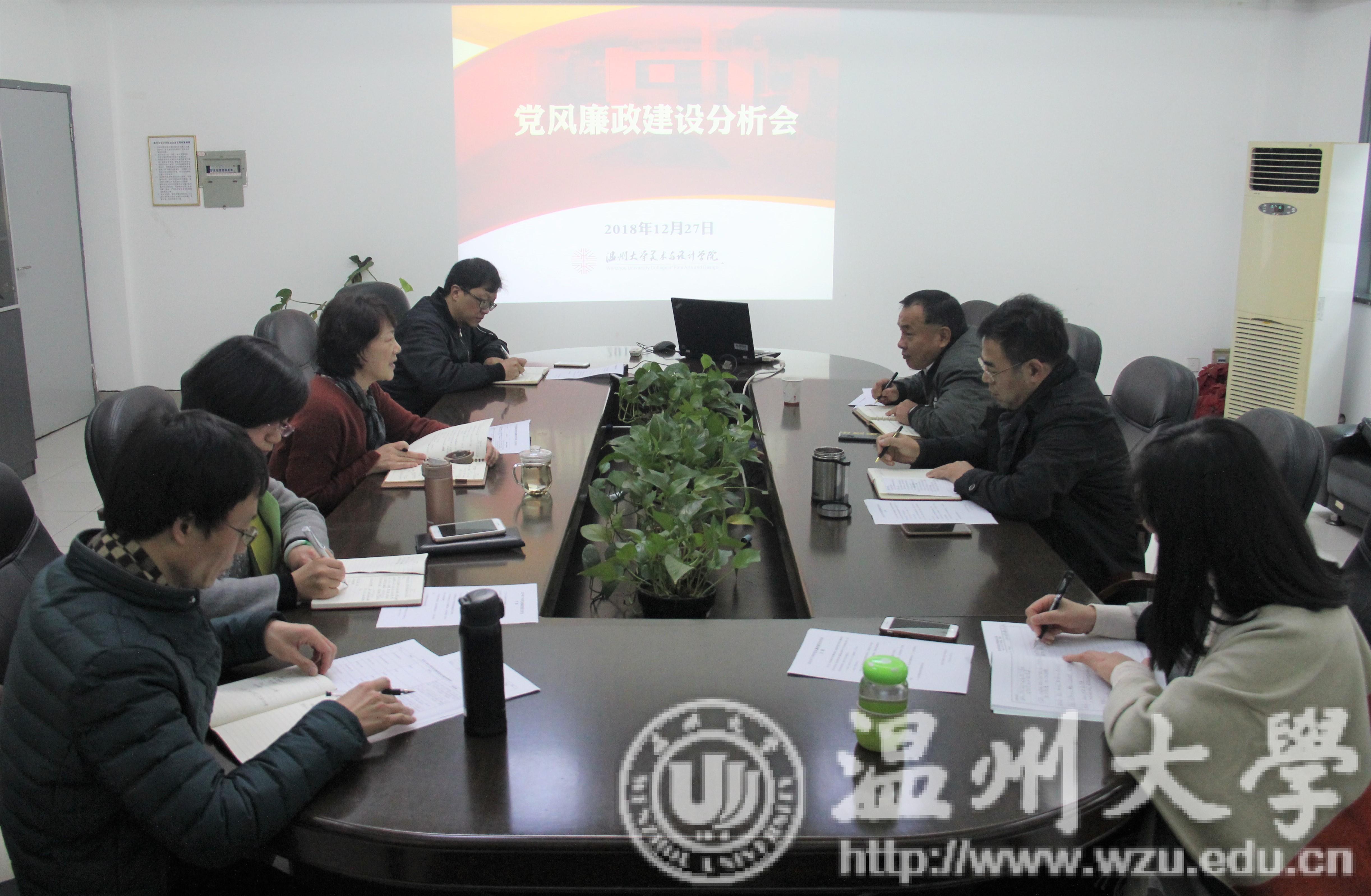 12月27日下午,永利yl23411官网班子在2B216会议室召开党风廉政建设专题分析会。公司工会主席、纪检委员张希均应邀到会指导。会议由公司党总支书记张丽萍主持。 会上,张丽萍书记代表公司领导班子作了2018年下半年党风廉政建设情况分析报告。一是从制度建设上入手加强党风廉政建设,通过一岗双责及任务分解形成长效机制,认真制定并执行相关文件制度;二是及时传达公司相关会议精神,利用每周例会、教工大会向班子内部、全体教师传达会议精神,不断提高思想认识;三是召开专题讲座,除了书记、经理的主题讲座,还邀请赵敏董事长、彭小明教授等来院开展专题讲座;四是围绕家风家规家训开展主题教育活动,如永昌堡、霞浦等实地教育实践;五是运用校内经济审计结果开展警示教育,并针对主要问题进行整改落实;六是坚持党务信息公开,在阳光下接受监督,涉及30多个方面的公开内容;七是加强廉政谈话,通过班子一岗双责谈话、廉政预防谈话等,以警示教育为主,提早防范和杜绝腐败。张丽萍还针对目前存在的风险和今后的举措作了详细分析。 经理李运河结合个人工作岗位作党风廉政风险剖析。他从思想认识、工作职责方面分析党风廉政建设工作在认识度和执行力上的重要性。他个人坚守公开透明、阳光是最好的防腐剂;严守秩序、遵守制度;分工负责,集体决策。同时,他对公司工作中可能存在的风险点做了详细排查,比如项目申报、评奖评优、教师年度考核、个人科研项目经费使用、重大项目经费如市长杯、设备购置、招生工作等等重点隐患排查点,在解决方案上要坚守公平公开、严格程序,同时要从制度上立规矩、严把关,人、财、物管理规范化,结合集体决策、警钟长鸣,才能有效杜绝腐败。 班子其他成员分别结合各自分管工作做廉政风险分析、一岗双责落实、民主集中制和作风建设等情况汇报,并结合风险点排查制定了下一步解决方案。 张希均对永利yl23411官网班子党风廉政建设专题分析会给予充分肯定,他认为美术班子非常重视、准备充分、风险点表达准确。同时,他提出针对不同程度的风险,要找准日常风险点,把握原则、不碰底线,处理好责任担当与权力使用的博弈问题。