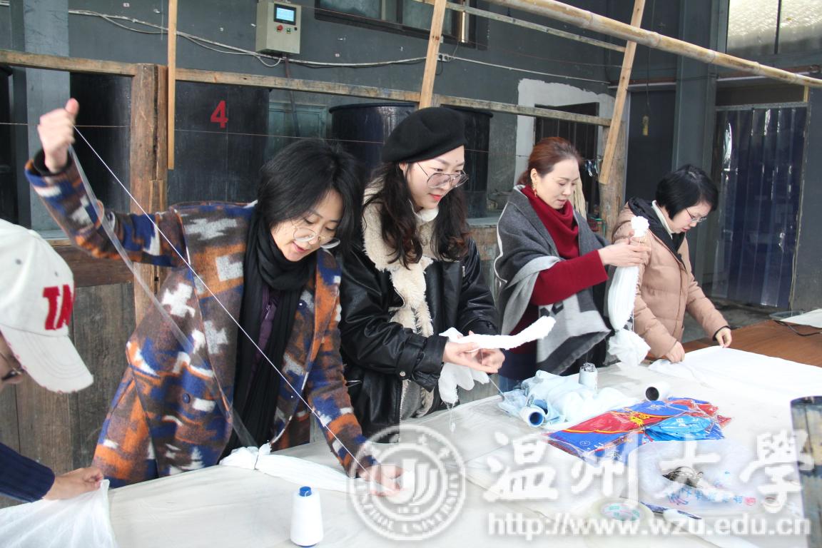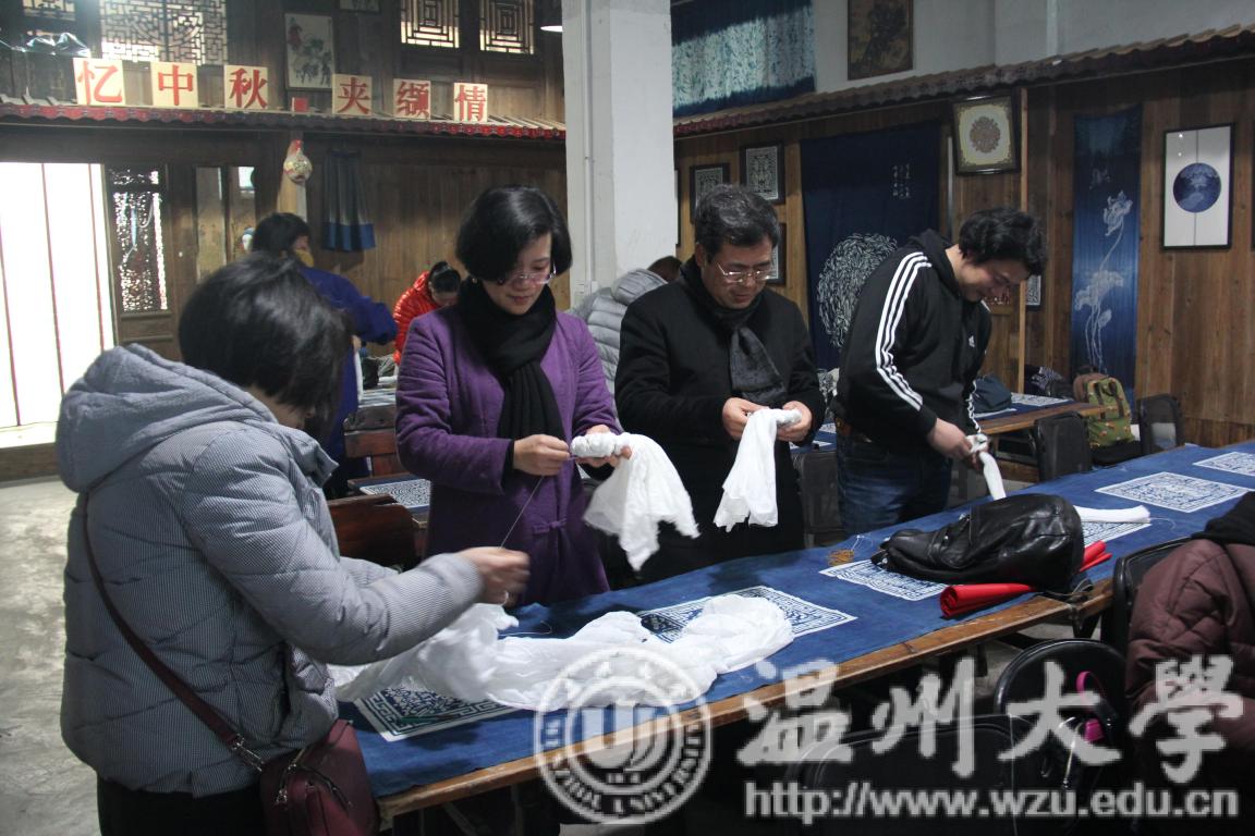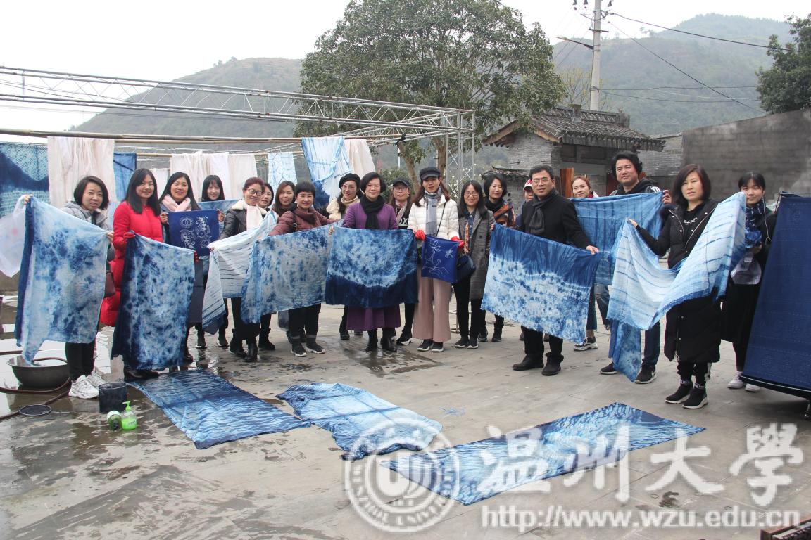 阳春三月,桃李芳菲。永利yl23411官网工会组织全院女教师赴温州市采成蓝夹缬博物馆,开展世界非物质文化遗产体验活动。 乡野间桃红柳绿油菜花黄,一路上的大家因美景而兴致高昂,谈笑风生欢声笑语洒满车厢。一小时后老师们到达了位于瑞安马屿净水村附近的一幢乌瓦白墙的江南民居式建筑——温州市采成蓝夹缬博物馆。这里山环水绕茂林修竹溪流淙淙,环境十分优美。 温州蓝夹缬技艺代表性传承人、采成蓝夹缬博物馆的王河生馆长热情地到门口迎接大家。在讲堂落座后,王馆长向老师们介绍了我国夹缬印染的历史发展、原料炼制、工艺流程等知识。大家了解到:夹缬印染工艺在我国有着非常悠久的历史,早在隋唐时期彩色夹缬就已十分兴盛;宋以后由于政治经济的因素,彩色夹缬衰落而蓝夹缬一枝独秀获得了长足发展,至明清已成为相当规模的产业;民国以后由于西方工业化印染技术的传入使用天然染料的传统手工印染业陷入困境,以致前些年蓝夹缬技艺在浙南趋于消亡。在党和政府的关怀下蓝夹缬技艺被列入“国家级非物质文化遗产”得到了保护和发展。“青出于蓝而胜于蓝”的传统蓝夹缬印染技艺焕发出了新的生机。 随后在王馆长的引导和讲解下,女老师们参观了博物馆的各个展厅,从明清到当代丰富的藏品为大家呈现出一个异彩纷呈的印染艺术世界。结核自己的美术和设计专业大家纷纷与王馆长互动探讨,气氛相当热烈。之后,老师们还观摩了用木雕版印染蓝夹缬的工艺流程。 最后,为对工艺加深了解,大家亲身实践,拿出布料棉线等材料,制作扎染和蜡染作品。绑、扎、缝、叠、裹……各种技法在美院女老师的一双双巧手中纷纷上阵,创造出一个个姿态各异的布品。再在靛蓝染缸里经过“三浸染三氧化”的染蓝工序,固色漂洗后,一件件花色多变千姿百态的印蓝丝巾呈现在大家面前迎风飘扬,博物馆里院子里立刻飘起了一道靓丽的风景线。老师们站在晾架前面对着各自创造的作品交流着心得体会,欢声笑语阵阵不断。 短短半日,老师们沉浸于传统染缬文化传递的历史美,在这盎然春日,至真至美的地方传统文化再次在寻访之人心中生根发芽,并将年复一年绽放于教书育人的一言一行。(文/图冀千里)
