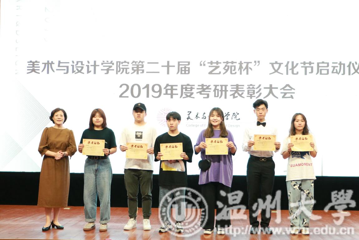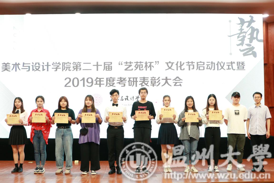 2019年4月24日下午,永利yl23411官网第二十届艺苑杯文化节启动仪式暨2019年度考研表彰大会在岩松堂雁山厅顺利举行。莅临本次启动仪式的领导有公司党委宣传部副部长冯方盛,校教务处副处长胡瑜,校学工部副部长、员工处副处长高红星,校就业处副处长应中,校团委副书记魏一,超豪学区党委副书记李祖祥,永利yl23411官网经理李运河,党总支书记张丽萍,副经理张晓剑。参加本次活动的还有永利yl23411官网17、18级同学。启动仪式由美公司党总支副书记杨振海主持。 本届“艺苑杯”文化节的主题“艺梦为马·不负韶华”源自海子的著名诗篇《以梦为马》,寓意美院学子将艺路梦想作为前进的方向和动力,在有限的年华里为梦想去拼搏。系列活动包括纪念“五四运动100周年”;传承中华优秀传统文化;“融艺优品”创新创业;“艺家人”青年志愿服务;“毕业季”;纪念“建国70周年”等6大篇章共34个子活动。 启动仪式的开场是“五四”主题诗朗诵《青春的火焰》。充满爱国激情的诗歌表达了对100年前五四运动的深切赞颂,激昂的文字让同学们更深切体会到了五四运动的爱国主义精神内涵,进一步增强了同学们的时代责任感和使命感。 张丽萍书记为启动仪式致辞。张书记回顾了“艺苑杯”文化节自2000年创办以来不断发展壮大的历程。“艺苑杯”文化节不仅营造了积极向上、健康文明的校园文化氛围,更成为同学们在实践中锻炼自我成长才的重要平台。张书记鼓励同学们积极参加到“艺苑杯”文化节各项活动中,用激情去创造,用行动去证明,用精品去展现,共同谱写青春绚丽多彩的乐章。 仪式最后,与会领导上台共同启动永利yl23411官网第二十届“艺苑杯”文化节。 会议第二项议程是学风表彰。大会宣读了2018年度永利yl23411官网“五班十星”名单和2019年度永利yl23411官网“考研奖学金”获得者名单。2017-2018学年校级学习标兵陈晨,2019年度美院“考研奖学金”获得者代表15服工班杨怡洁、15美术学一班聂枭雄分别做学习和考研经验分享。2019年永利yl23411官网共有16人考取研究生,16人中有5人被浙江理工大学录取、6人被永利yl23411官网入口录取、1人被杭州师范大学录取,还有4人被国外的大学录取。与会领导为他们颁发了奖状和证书并合影留念。 随后,李运河经理作考研动员讲话。他指出了本科阶段学习与研究生阶段学习的不同,并引用毛泽东、曾国藩、习近平总书记等名人轶事鼓励同学们以考研成功的学长学姐为榜样,树立以学习为本的理念,任何时候都不要放弃学习,多读书,读好书,勤实践,多游学,珍惜大学时光,珍惜青春韶华,学好专业知识,实践专业技能,强健体魄,刚强意志,努力奋斗实现人生梦想。 最后,为迎接祖国70华诞,全体师生手中挥动国旗,共同献唱《我和我的祖国》,大会圆满结束。