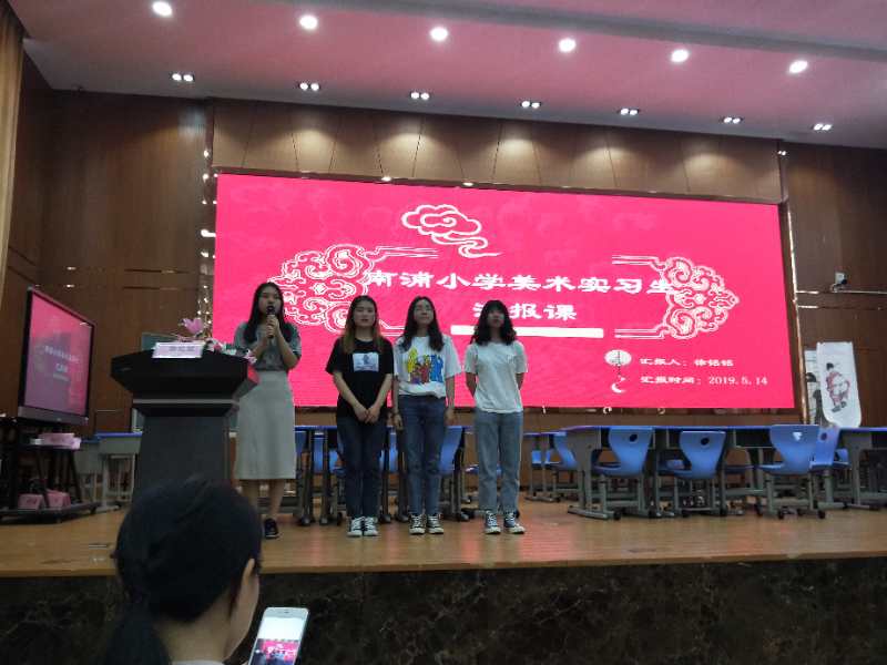 作为公司实践教学导师,南浦小学美术教研组长林茫对这三堂课进行简短的评价与分享。之后胡建南老师就这三堂课进行点评,认可了她们的成果与进步也指出了其中还存在的不足。最后16级实习生,17级美术学师范全体师生和南浦小学老师共同合影留念,本次汇报课圆满结束。