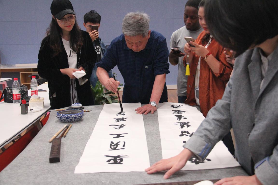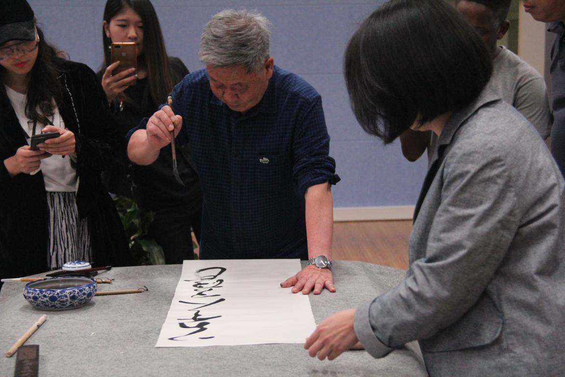 讲座结束后,马亦钊老师现场挥毫泼墨,创作出一幅精美的书法作品赠送给永利yl23411官网,李运河经理和张丽萍书记接受赠送并做答谢。