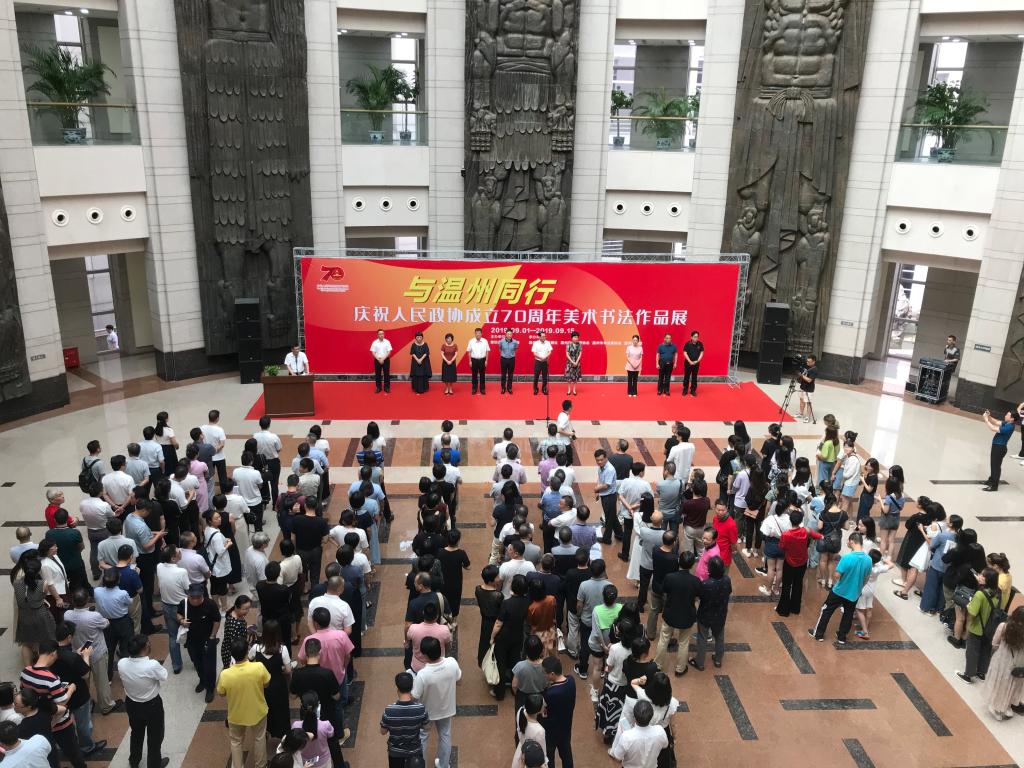 昨天,天朗气清,惠风和畅,美院17美术师范1班、18美术师范1、2、3共4个班级员工在蔡可群老师、陈伟老师、黄良老师的带领下,于上午9时乘校车到市府路温州博物馆参观了“与温州同行——庆祝人民政协成立70周年美术书法作品展”。