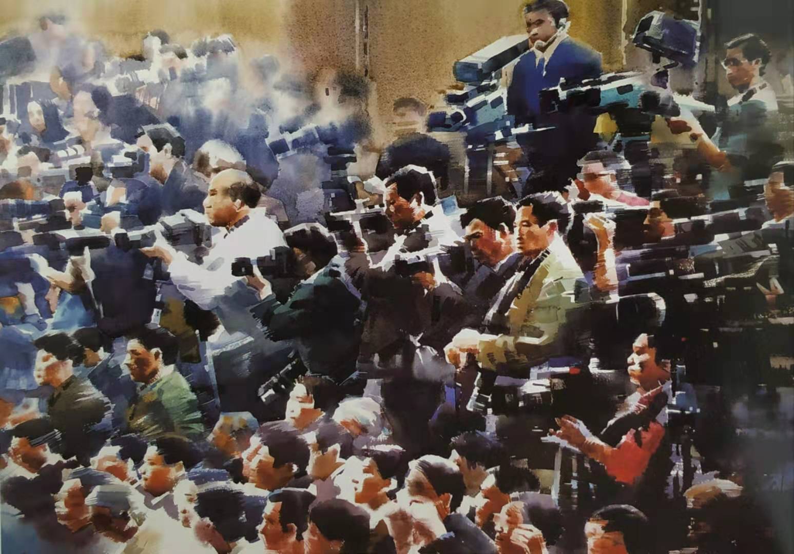 昨天,天朗气清,惠风和畅,美院17美术师范1班、18美术师范1、2、3共4个班级员工在蔡可群老师、陈伟老师、黄良老师的带领下,于上午9时乘校车到市府路温州博物馆参观了“与温州同行——庆祝人民政协成立70周年美术书法作品展”。 开幕式现场 展厅气象清新,参观者络绎不绝。简短的开幕式后,师生们漫步其间,三五成群,认真观摩点评,于上午11时准时离场返校,切身感受到温州本土文化的熏陶,收到了良好的实地观摩学习效果。本院蔡瑞蓉、谢子静、蔡可群、李利民、陈伟、陈旭海等老师各有作品入展。 员工观摩 蔡瑞蓉:《守望的形式》综合材料 李利民:《聚焦中国》水彩作品 陈伟:《镜像观者,行者》木刻版画 陈旭海:《农历二月初一.日记》版画 谢子静:《款款飞回夕照斜》中国画 蔡可群:《柿子正红》油画