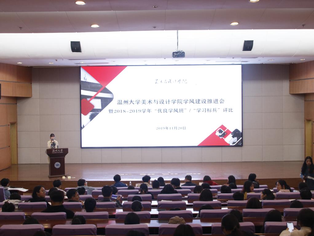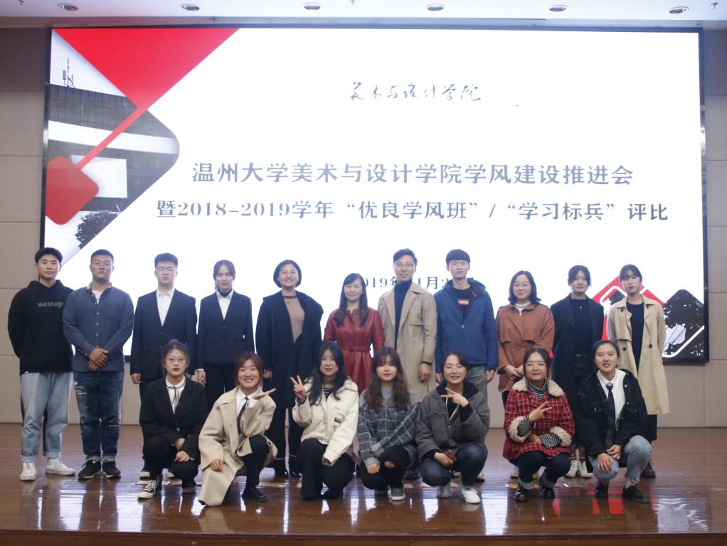 为加强美院学风建设,2019年11月20日晚,永利yl23411官网学风建设推进会暨2018-2019学年“优良学风班”和“学习标兵”评比活动于育英图书馆报告厅顺利举行。出席本次评比活动的评委有公司党委副书记杨丽君老师,学工办主任杨鹏老师,教学科阳自杰老师,辅导员杨永利老师,员工会主席祝晴同学以及各班员工评委。