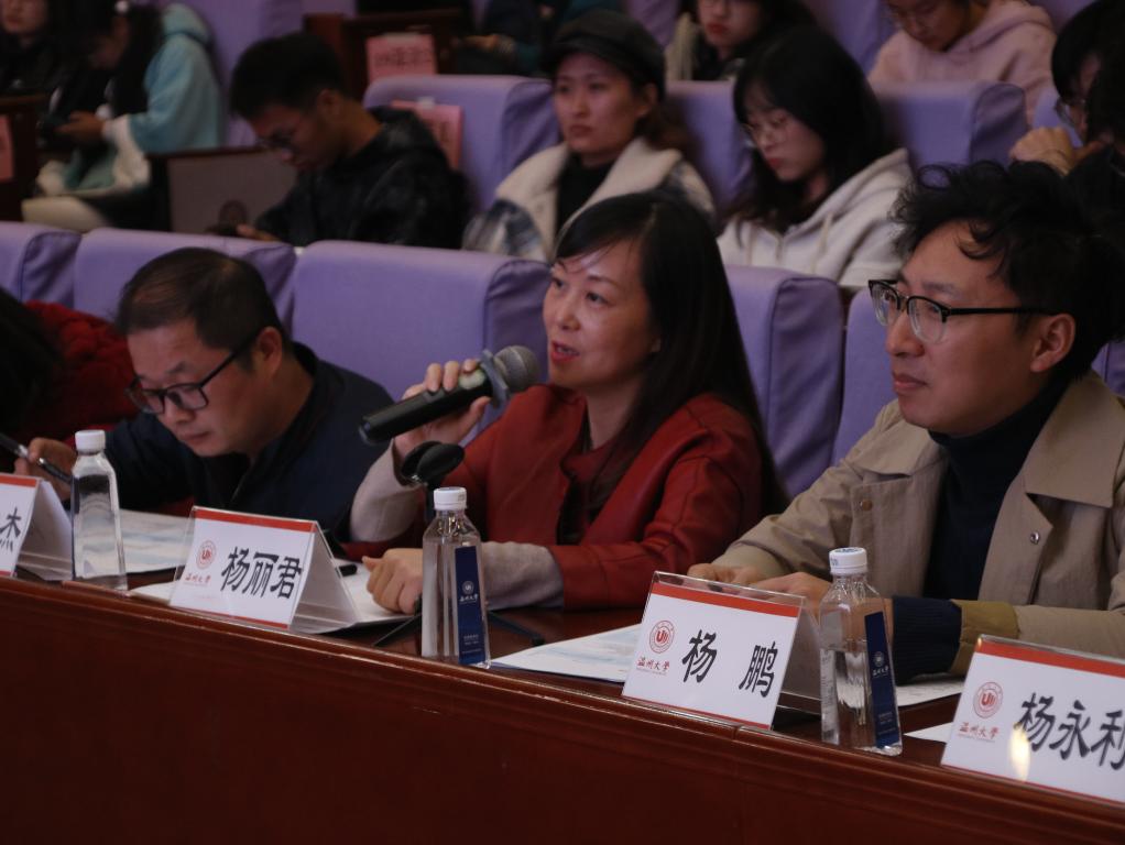 最后,公司党委副书记杨丽君老师对所有参赛班级和个人给予了积极的肯定。同时,杨丽君老师对美院学子提出了三点期许:第一,遵规守纪,做优秀温大人;第二,扎实学习,做优秀美院人;第三,积极进取,做最优秀的自己。相信各位同学将以此次参赛选手为榜样,严于律己,积极向上,相信我们美院也会如杨书记所言,莘莘学子成栋梁,芬芳园丁名四方,共创美院新辉煌。