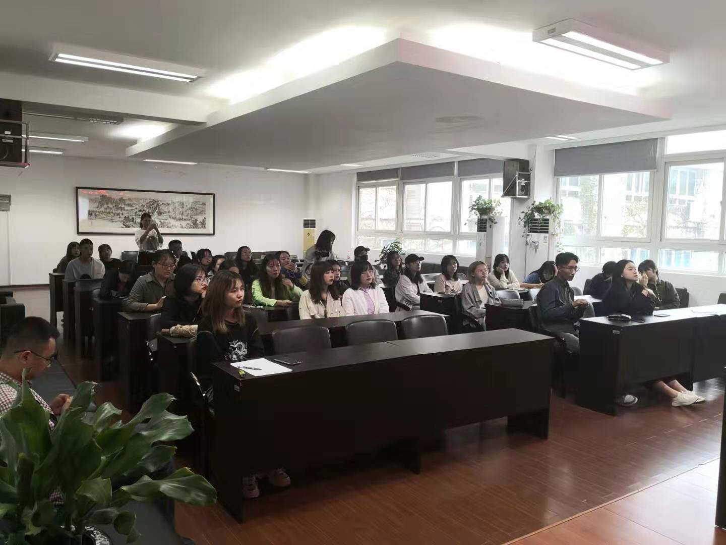 2019年10月9日下午,永利yl23411官网召开2020年硕士研究生考试报名指导分享会,参加会议的嘉宾有中公考研金牌班主任吴冰冰、学工办杨鹏老师、邓诗雨博士、徐超老师,22019级研究生聂枭雄、黄紫荆以及参加2020年硕士研究生考研的40多名同学们。