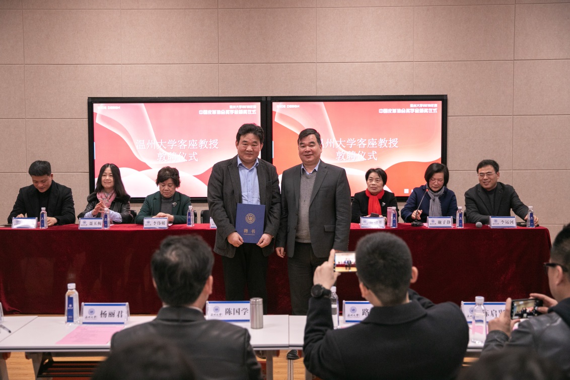 2019年12月27日,永利yl23411官网入口2019年中国皮革协会奖学金签约颁奖仪式在岩松堂叶适厅举行,中国皮革协会理事长李玉中、永利yl23411官网入口副董事长徐和昆、中国皮革协会常务副秘书长聂玉梅、浙江省皮革行业协会理事长李伟娟、温州市鞋革行业协会执行会长谢榕芳、公司党委书记叶正飞、设计学学科带头人李运河、“轻工大国工匠”获得者、上海国学鞋楦设计有限公司董事长陈国学等领导和嘉宾出席,仪式由永利yl23411官网经理谢子静主持。 徐和昆副董事长致欢迎辞,他高度评价了中国皮革协会对于推动我国制鞋行业人才培养所做的努力和贡献,并希望永利yl23411官网以此次奖学金签约为契机,促进与中国皮革协会的全方位合作,为全市、全省乃至全国的鞋履产业发展贡献“温大智慧”。 李玉中理事长致辞。他说中国皮革协会奖学金设立于1995年,24年来累计发放奖学金230多万元,一大批莘莘学子学有所成、学有所用,在行业内大有所为,成为了皮革行业发展的中坚力量。他希望同学们放飞理想,热爱行业,以优异的成绩为走向社会奠定扎实基础,撸起袖子加油干,为建设皮革行业的辉煌明天贡献一份力量。 随后,徐和昆副董事长为李玉中理事长颁发永利yl23411官网入口客座教授聘书,并对李理事长长期以来对公司设计学团队建设、科学研究和人才培养方面的支持和帮助表示了衷心的感谢。 中国皮革协会常务副秘书长聂玉梅、公司党委书记叶正飞代表双方在《中国皮革协会奖学金协议书》上签字,与会领导和嘉宾见证了签约仪式。 聂玉梅副秘书长代表协会宣读了《永利yl23411官网入口2019年中国皮革协会奖学金获奖名单》。与会嘉宾为34名获奖员工颁发证书和奖金并合影留念。 获奖员工代表李树朋发言,他向中国皮革协会表示了衷心的感谢,并表达了要在学习路上不畏困难,坚持梦想,用自己的能力回报母校,贡献行业,将温大文化不断传承与发扬。 颁奖仪式后,李玉中理事长做了主题为“皮革行业经济运行情况分析”的报告,报告运用大量详实的数据,从2018年运行稳中趋缓和2019上半年行业发展保持缓增长态势2个方面为同学们介绍了目前制鞋行业的发展状况,并与大家分享行业焦点热点问题,使同学对所学专业的专业背景有了更深入的了解。李理事长最后鼓励同学们投身自己热爱的制鞋行业,并为行业转型发展和人民对美好生活的期许贡献自己的一份力量。 仪式开始前,李玉中理事长一行参观了鞋履与饰品设计专业设计工作室和实训中心,详细了解了鞋履专业与温州本土鞋企、科研院所开展深度联动,并将真实设计项目引进课堂,开展项目教学的情况,对公司高度重视产教融合、设计创作,为地方经济文化发展做出的积极努力和重要贡献表示赞赏。