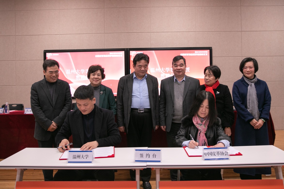 中国皮革协会常务副秘书长聂玉梅、公司党委书记叶正飞代表双方在《中国皮革协会奖学金协议书》上签字,与会领导和嘉宾见证了签约仪式。