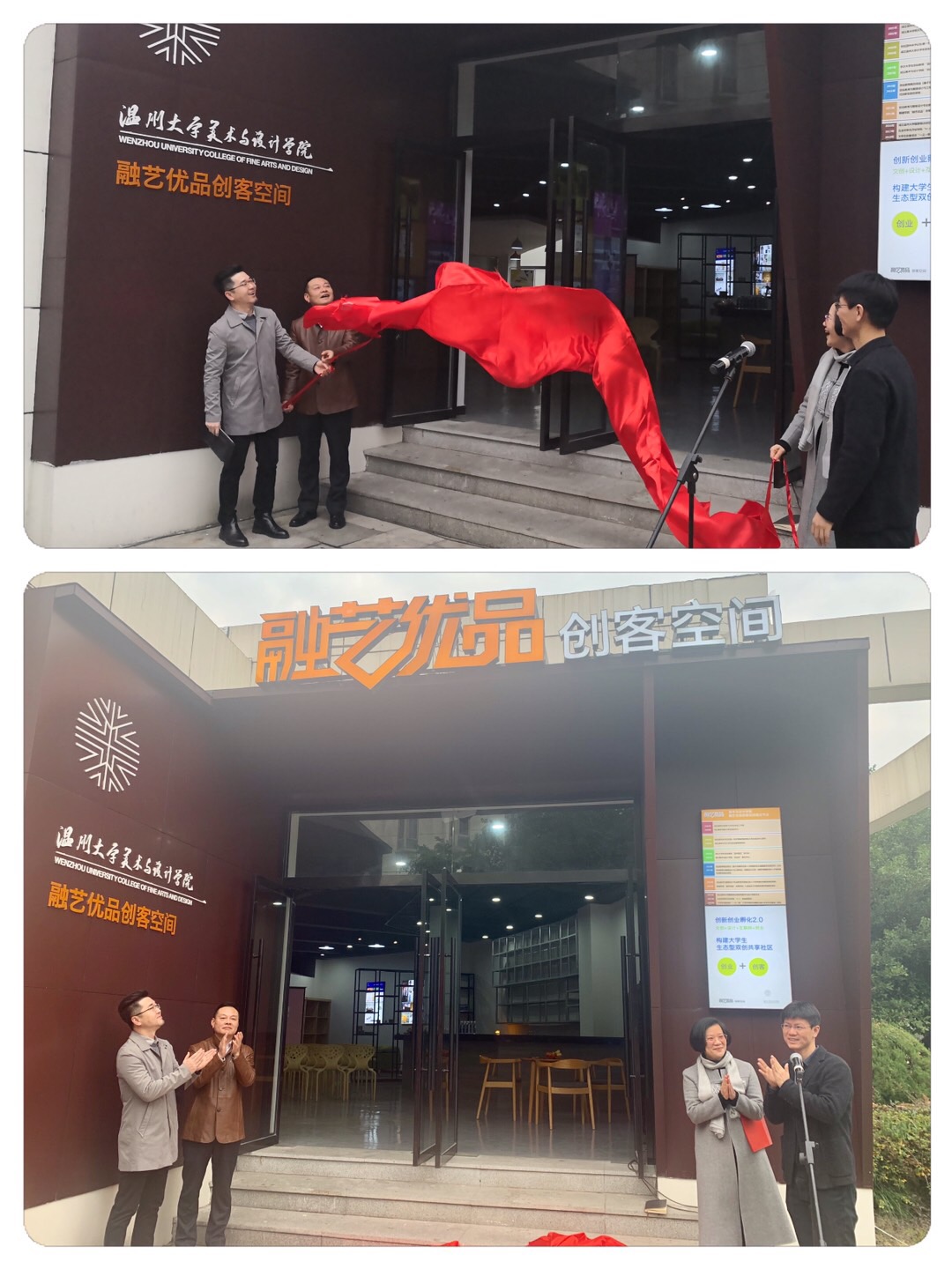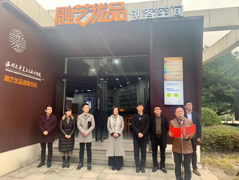 2020年1月3日上午,永利yl23411官网“融艺优品”创客空间揭牌仪式隆重举行。永利yl23411官网入口党委委员、宣传部部长潘玉驹、创新创业公司经理施永川,温州四目公司总经理张登峰、永利yl23411官网经理谢子静、党委书记叶正飞等院领导班子及入驻团队师生出席了揭牌仪式。