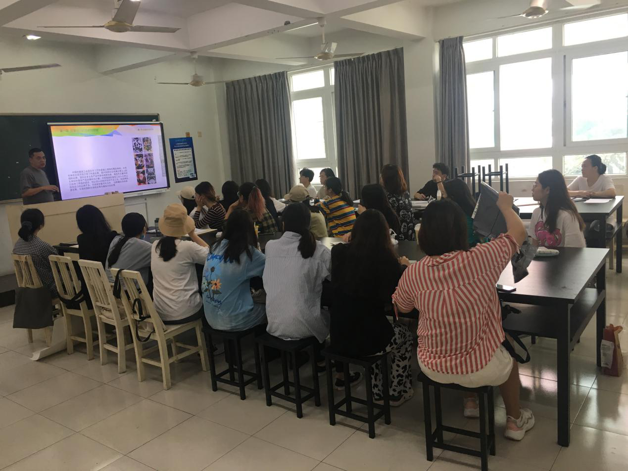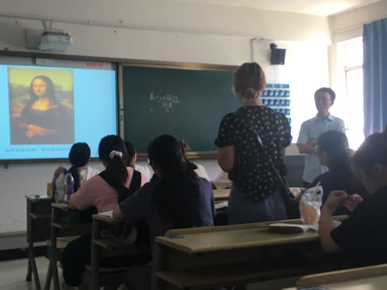 周四上午校领导潘玉驹、部门领导李密、校督导袁建国、美院领导谢子静、胡文超、美院教务科黄呼尔励,听了18美师3班《美术概论》张晓剑老师的课,张老师的课程幽默风趣有内涵。授课导入以3个为什么引导员工参与探讨,引入案例与实际例子引起员工深入思考,通过知识过渡与展开引导员工深化对问题的认识。张老师教态自然,语言表达逻辑强,在讲台、屏幕、员工之间游走保持与员工交流,达到了很好的积极互动与沟通效果,受到了听课领导的一致好评。