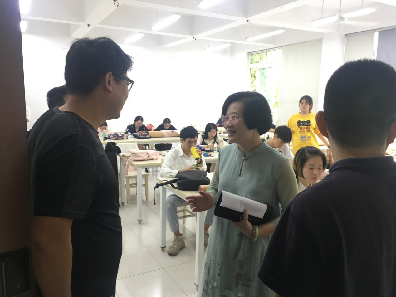 周四上午校领导潘玉驹、部门领导李密、校督导袁建国、美院领导谢子静、胡文超、美院教务科黄呼尔励,听了18美师3班《美术概论》张晓剑老师的课,张老师的课程幽默风趣有内涵。授课导入以3个为什么引导员工参与探讨,引入案例与实际例子引起员工深入思考,通过知识过渡与展开引导员工深化对问题的认识。张老师教态自然,语言表达逻辑强,在讲台、屏幕、员工之间游走保持与员工交流,达到了很好的积极互动与沟通效果,受到了听课领导的一致好评。 为了规范教学程序、提高教学质量、促进教风、学风建设。公司积极推行领导听课制度。领导干部提出宝贵意见,有助于教师发现问题,解决问题。 图:课堂生动打动听课人员 图:授课导入、知识过渡与展开 图:课后研讨 周二开课第一天,院领导谢子静、胡文超、顾任飞、杨丽君、教务科黄呼尔励巡查了公司各教室与课程,对师生们的上课状态及公司开学前教室设备等教学准备予以了肯定。 图:院领导、校督导讨论师生教学状态 图:院领导课间与教师交流 图:院领导探访教师工作室 图:部分课堂场景
