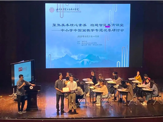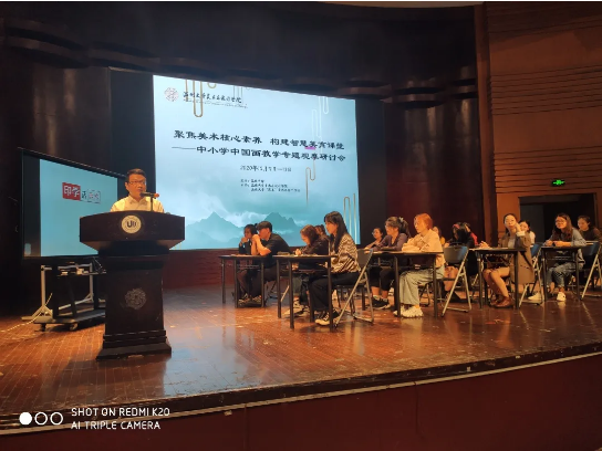 “画阑开处冠中秋”,桂子飘香美院传。2020年10月11日,聚焦美术核心素养,构建智慧美育课堂---中小学中国画教学专题观摩研讨会在在永利yl23411官网入口南校音乐厅举行,研讨会安排了课堂教学展示,主题讲座,名师经验交流等环节,内容丰富、形式多样、深入探讨了美术教育当前所需要关注的美术核心素养以及对于中国画在课堂上的渗透和教法等教学问题。