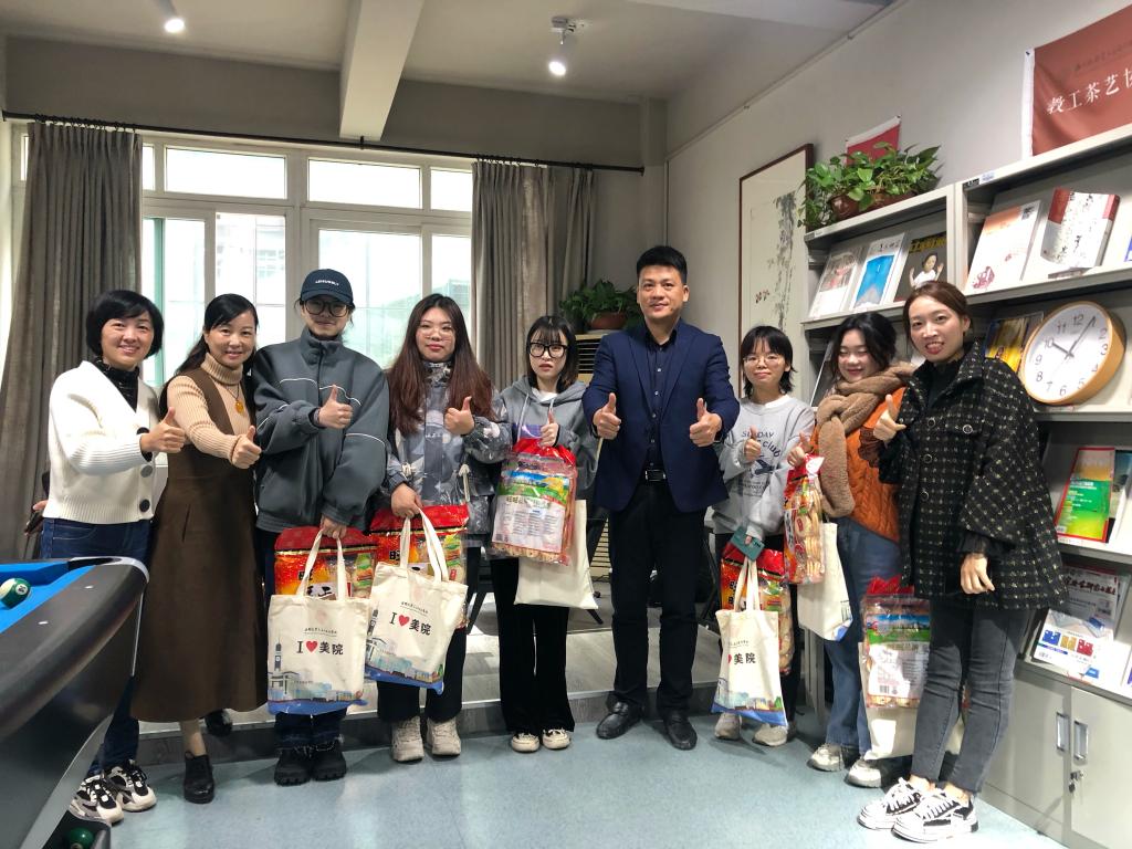 为鼓励美院考研学子积极迎考,坚定考研信心,11月24日上午,永利yl23411官网开展了为考研学子发放“考研加油包”活动。公司党委书记叶正飞、副书记杨丽君、副经理胡文超、顾任飞及学工办老师们参加了本次活动,与考研学子齐聚一堂,为他们加油助力。