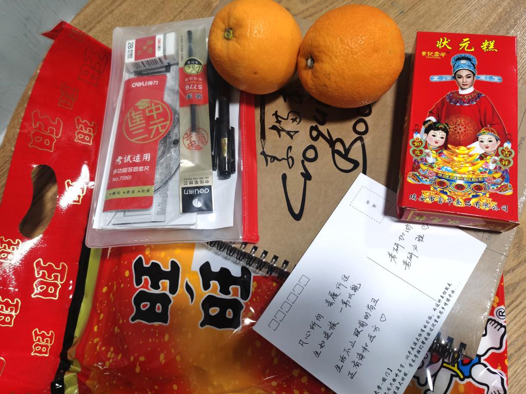 活动开始,公司领导亲切慰问考研学子,希望他们坚定信念,努力奋斗,坚持到底。同时提醒考生在冲刺阶段调整好心态,劳逸结合。随后各位老师向考研学子派发精心准备好的“考研加油包”。“考研加油包”包含文具套装、素描本、状元糕、脐橙、明信片、旺旺雪饼等极具寓意的礼物。