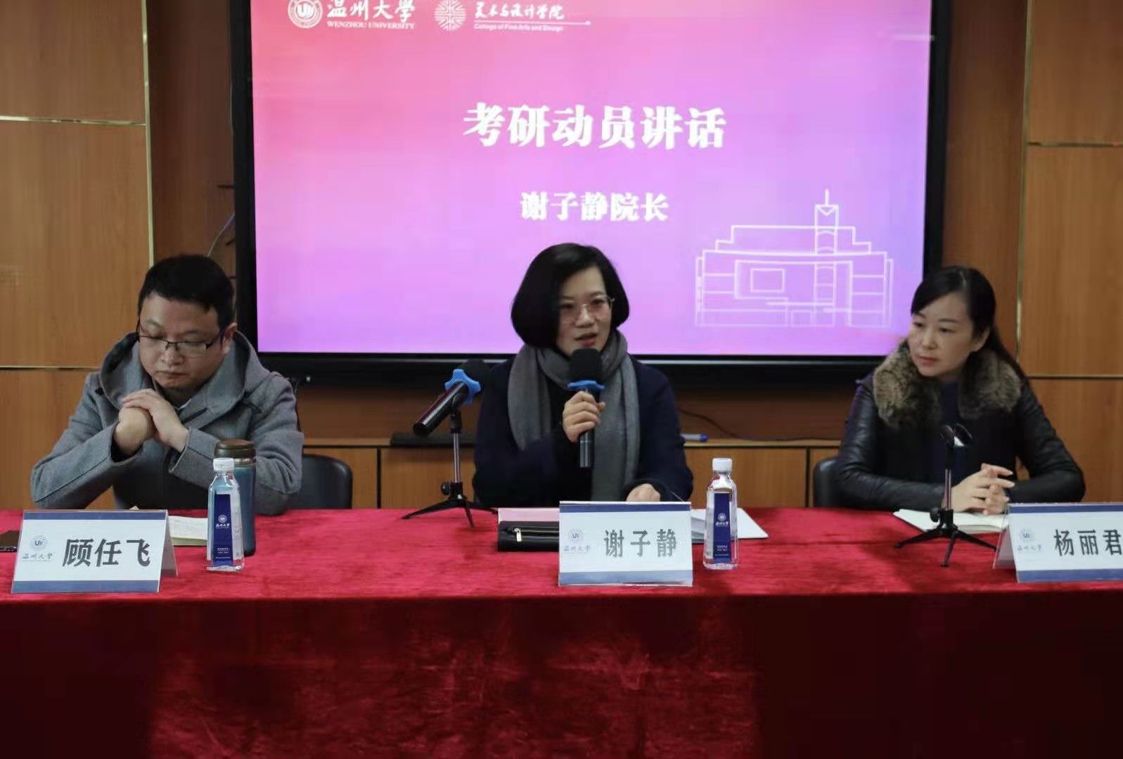 2020年12月16日下午14点,永利yl23411官网2018级考研动员服务月暨“艺·研·帮”系列活动启动仪式在美院综合楼2b4001顺利开展。出席本次活动的嘉宾有经理谢子静、党委副书记杨丽君、副经理顾任飞、学工办老师以及2018级考研员工代表,活动由美公司党委副书记杨丽君老师进行主持。此次动员大会旨在指导员工如何在考研前做好充足的准备,在未来更好地发展。