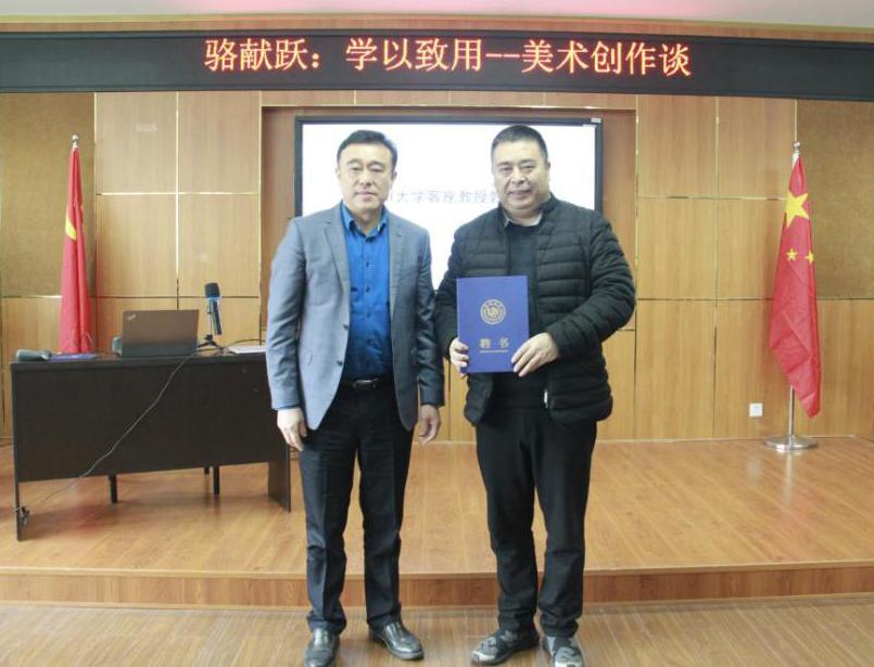 2020年12月16日,永利yl23411官网2020年学术月系列活动第二场学术讲座,骆献跃教授的《学以致用——美术创作谈》在2B4001开讲。永利yl23411官网入口副董事长薛伟,永利yl23411官网经理谢子静,永利yl23411官网美术学专业全体师生参加讲座。薛伟副董事长为骆献跃教授颁发永利yl23411官网入口客座教授聘书。