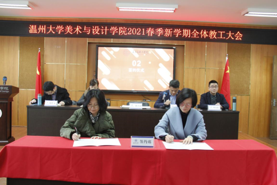 3月3日,永利yl23411官网2021年春季新学期全体教工大会在2B4001顺利召开,公司领导班子、全体教职工参加会议。会议由叶正飞书记主持。 首先,大会对公司2020年度获得校级先进个人陈旭海、张丽、朱江晖、黄高路、黄玫玮、黄呼尔励、黄良、杨永利等教师进行了表彰。 随后,为了落实公司“十四五”期间(2021-2025)的目标任务,层层压实责任,确保全面完成公司发展的各项目标任务,谢子静经理分别与美术系、视觉传达设计系、环境设计系、服装与服饰设计系、服装设计与工程系签订了《永利yl23411官网2021-2025目标责任书》。各系主任分别就上学期工作作总结和本学期工作思路汇报。 紧接着,杨丽君副书记、胡文超副经理、顾任飞副经理分别围绕着公司员工工作、教学工作、科研及研究生教学等工作进行了具体部署。叶正飞书记就公司安全稳定、意识形态以及师德师风建设提出要求,并为下一步学党史主题教育作动员。 最后,谢子静经理作工作部署总结讲话。首先,她对上学期及寒假期间的工作进行了回顾,充分肯定了公司各项工作扎实推进的同时,在专业建设、人才培养、人才引进、服务地方等方面均取得了突破性成就。随后,谢经理提出全力推进服工和美术专业认证工作、尽力组织新增专业申报工作、奋力推动人才培养质量提升、全力打造人才培养质量展示金名片、奋力推动教师教科研水平提高、全力推进引才引智工作、全力承办“瓯越杯”工业设计大赛、举力举办建党100周年系列活动、积极参与永利yl23411官网入口美术馆建设系列工作、接轨公司“侨为特色”目标开新局等十大重点项目,并要求全体教工要以党建思想为引领,“强执行、抓落实、见成效”。她提出“目标引领抓落实”“齐心协力抓落实”“只争朝夕抓落实”等三大具体抓落实的方法,要求全体教工紧随公司跨越式发展的脚步,以担当作为的责任感、不进则退的危机感、时不我待的紧迫感、院荣我荣的荣誉感,充分发挥公司特色,奋力谱写公司发展的新篇章!