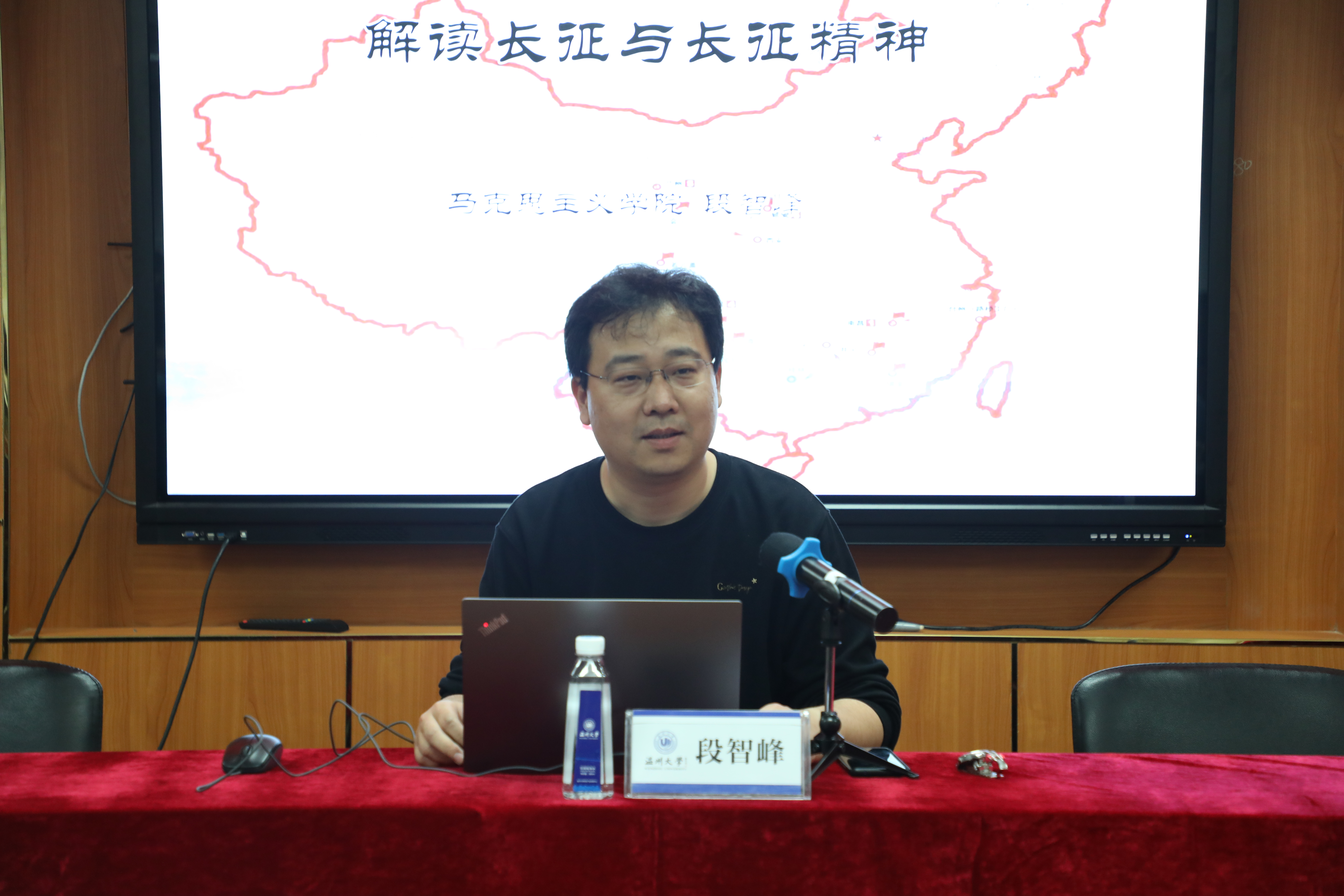 动员部署会后,马克思主义公司博士、温大党史学习教育讲师团成员段智峰以《长征与长征精神》为题作专题讲座,段智峰博士从长征的概念、长征的原因、长征的历程、长征的意义与启示四个部分,用叙事的方式将丰富翔实的历史材料娓娓道来。段智峰最后强调开展党史学习教育意义重大,希望大家通过学习党史传承优秀传统,走好新时代的长征路。