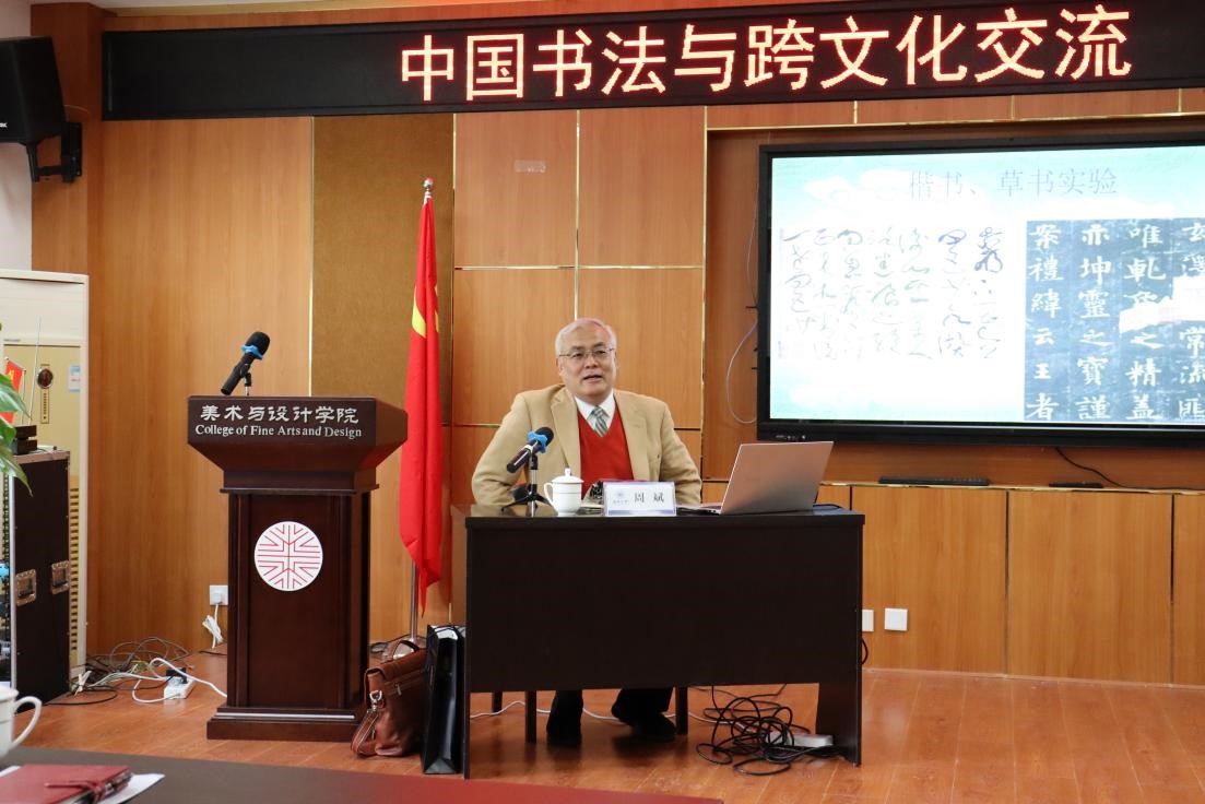 在报告中,周斌教授将跨文化书法理念充分分析,对其美学形态和风格进行逐一评述,并从思想内容及艺术形式两方面对中国书法跨文化的个性化的发展变化进行了深入探析。他认为教学相长尤为重要,在美国时期的教员工活让他本人对于书法文化的研究积累了丰富的经验。