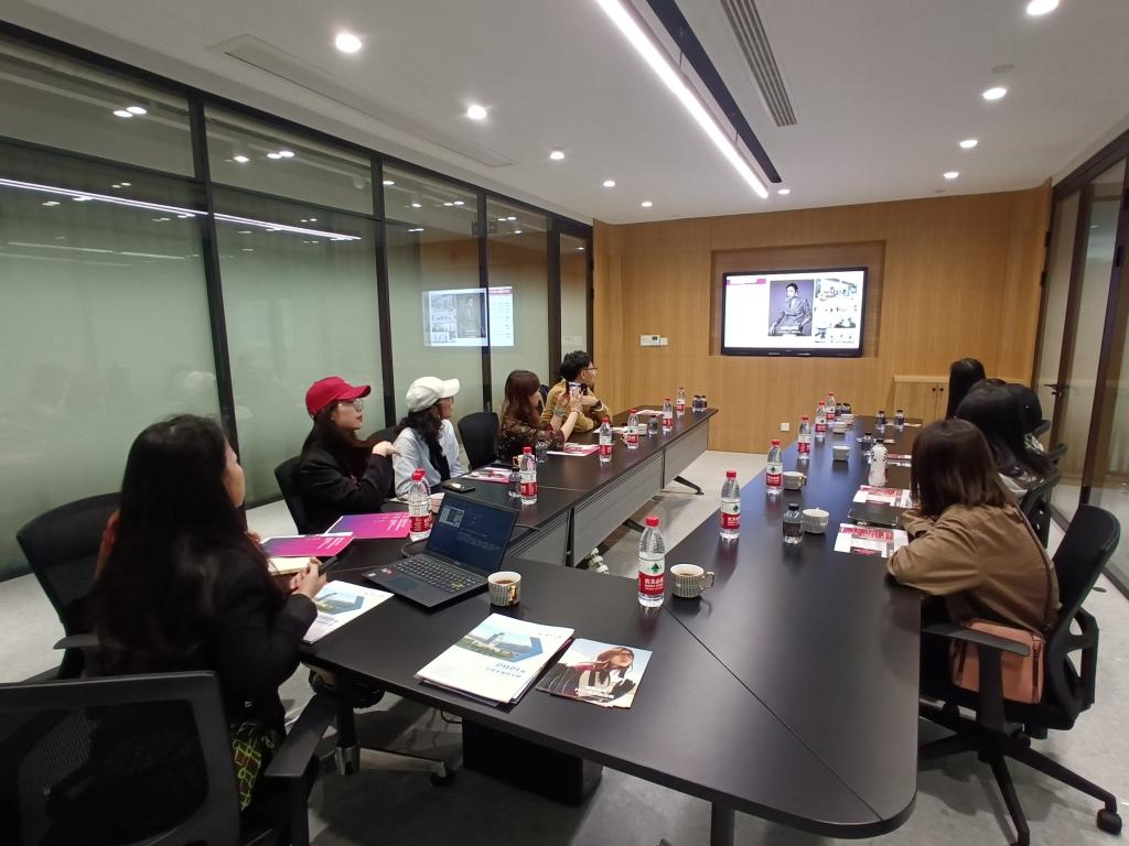 接着,公司一行人又走访了温州高姿商贸有限公司,该公司隶属于上海凰艮时尚集团,公司经历25年的发展,旗下拥有众多品牌和购物中心,成绩在业界有口皆碑。凰艮时尚集团人力资源总监谬丹丹女士、温州高姿商贸有限公司总经办林加娇女士等对走访的师生表示了热烈的欢迎。首先在林加娇女士的安排下,老师和员工们参观了该公司的办公环境、了解了公司的发展、经营理念和企业文化。随后,由谬丹丹总监为我们详细地介绍了公司的发展历程,以及公司对人才培养的规划和员工职业生涯发展的等多方面政策。公司党委副书记杨丽君也就美院毕业生情况、以及公司人才培养、校企合作方面的工作进行了简单的交流。随后,双方交流人员围绕企业选才需求、以及毕业生进入职场发展等话题进行了互动交流,期望未来双方可以进行多方面的人才培养合作。